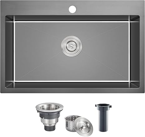28 x 18 Inch Drop in Kitchen Sink Single Faucet Hole, 18 Gauge 304 Stainless Steel Handmade Single Bowl Topmount Kitchen Sink, Black