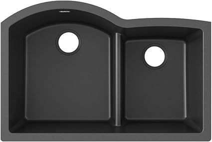 Elkay Quartz Classic ELGHU3322RBK0 Black Offset 60/40 Double Bowl Undermount Sink with Aqua Divide