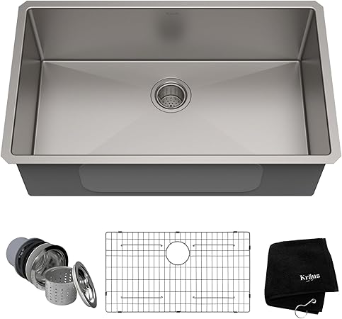 Kraus KHU100-32 Standart PRO 16 Gauge Undermount Single Bowl Stainless Steel Kitchen Sink, 32 Inch