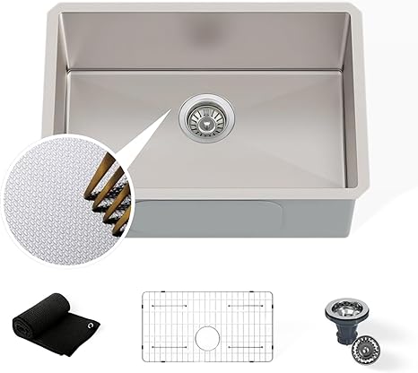 Undermount Embossed Kitchen Sink, 28x19Š—�, Scratch-Resistant 3D Microbead Finish, Single Bowl Stainless Steel, 10" Deep, Easy-Clean