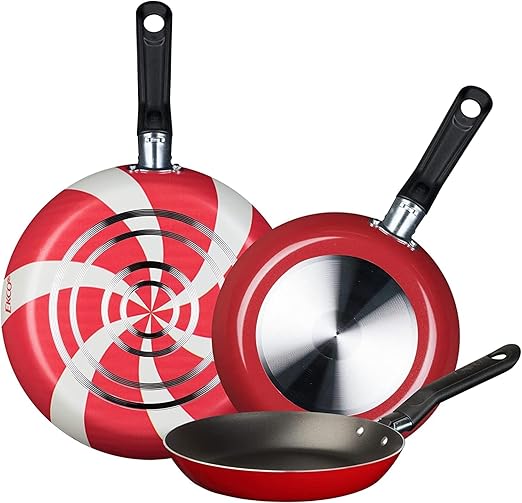 Ekco 3-Piece Frying Pan Set (7.1, 7.9 & 9.4 IN) For all Stovetops, Dishwasher Safe - Lightweight Aluminum Skillets, Non-Stick & Riveted Bakelite Handle (Caramel Red & White) PFOA & PTFE Free
