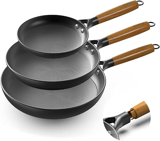 imarku Non Stick Frying Pans - 8&10&12 Inch Cast Iron Skillets Professional Cast Iron Pan Dishwasher Safe Nonstick Frying Pan Set, Detachable Handle