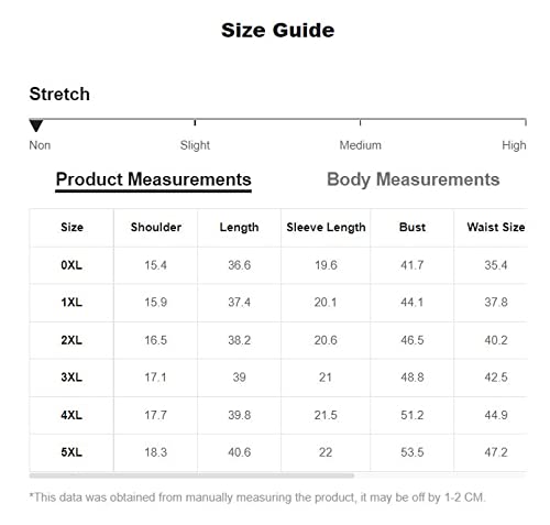 Details: Size Chart: Large Plus: Shoulder:15.4", Length:36.6", Sleeve Length:19.6", Bust:41.7", Waist Size:35.4", Hip Size:45.7", Cuff:9.6-20.5", Bicep Length:15.9"/ X-Large Plus: Shoulder:15.9", Length:37.4", Sleeve Length:20.1", Bust:44.1", Waist Size:37.8", Hip Size:48", Cuff:10.2-21.3", Bicep Length:16.9"/ XX-Large Plus: Shoulder:16.5", Length:38.2", Sleeve Length:20.6", Bust:46.5", Waist Size:40.2", Hip Size:50.4", Cuff:10.8-22", Bicep Length:17.9"/ 3X-Large Plus: Shoulder:17.1", Length:39", Sleeve Length:21", Bust:48.8", Waist Size:42.5", Hip Size:52.8", Cuff:11.4-22.8", Bicep Length:18.9"/ 4X-Large Plus: Shoulder:17.7", Length:39.8", Sleeve Length:21.5", Bust:51.2", Waist Size:44.9", Hip Size:55.1", Cuff:12-23.6", Bicep Length:19.9"/ 5X-Large Plus: Shoulder:18.3", Length:40.6", Sleeve Length:22", Bust:53.5", Waist Size:47.2", Hip Size:57.5", Cuff:12.6-24.4", Bicep Length:20.9"/