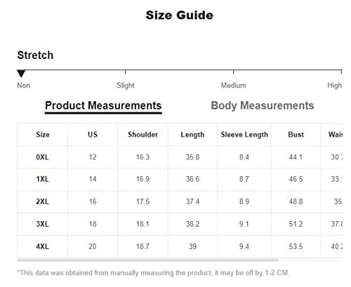 Details: Size Chart: Large Plus: Shoulder:16.3", Length:35.8", Sleeve Length:8.4", Bust:44.1", Waist Size:30.7-47.2", Cuff:24"/ X-Large Plus: Shoulder:16.9", Length:36.6", Sleeve Length:8.7", Bust:46.5", Waist Size:33.1-49.6", Cuff:25.2"/ XX-Large Plus: Shoulder:17.5", Length:37.4", Sleeve Length:8.9", Bust:48.8", Waist Size:35.4-52", Cuff:26.4"/ 3X-Large Plus: Shoulder:18.1", Length:38.2", Sleeve Length:9.1", Bust:51.2", Waist Size:37.8-54.3", Cuff:27.6"/ 4X-Large Plus: Shoulder:18.7", Length:39", Sleeve Length:9.4", Bust:53.5", Waist Size:40.2-56.7", Cuff:28.7"/