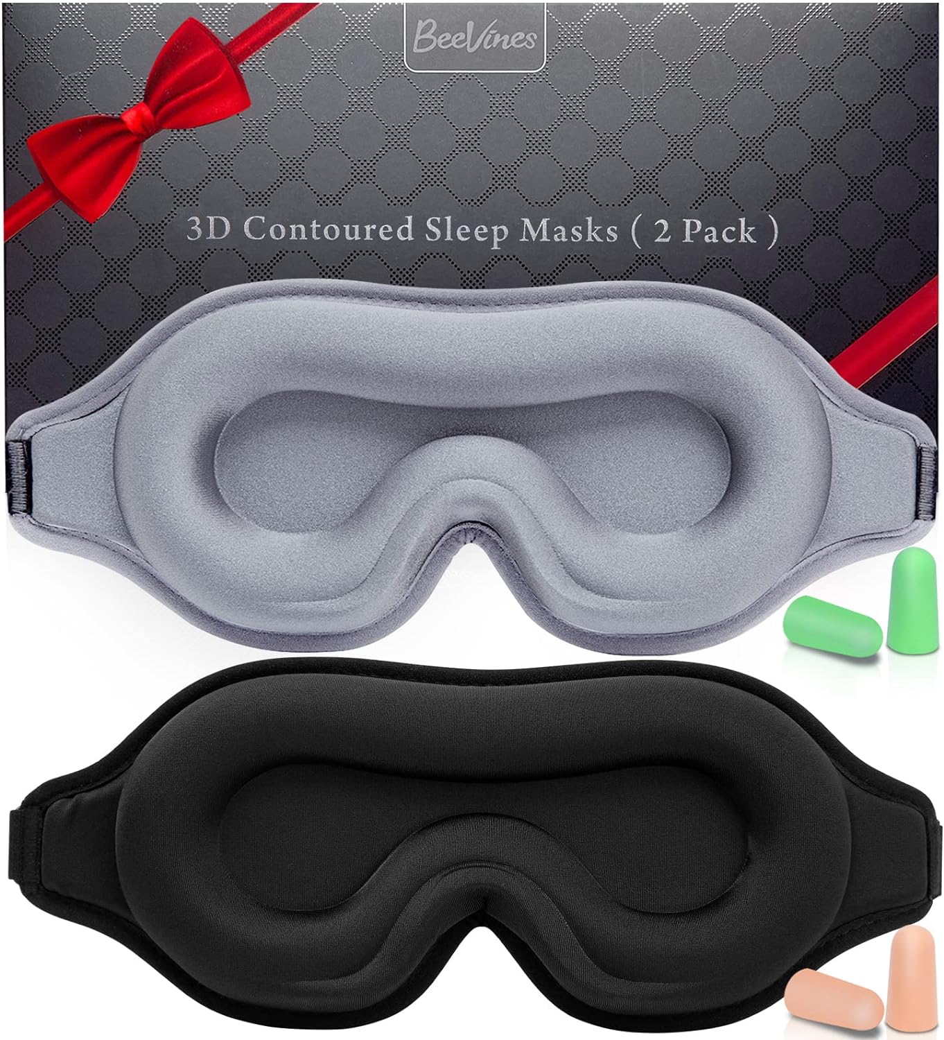 Eye Mask for Sleeping, 2 Pack 3D Contoured Sleep Eye Mask with Adjustable Strap, BeeVines Molded Night Eye Sleep Mask Blindfold for Lash Extensions, Eye Shade Cover for Travel Yoga Nap
