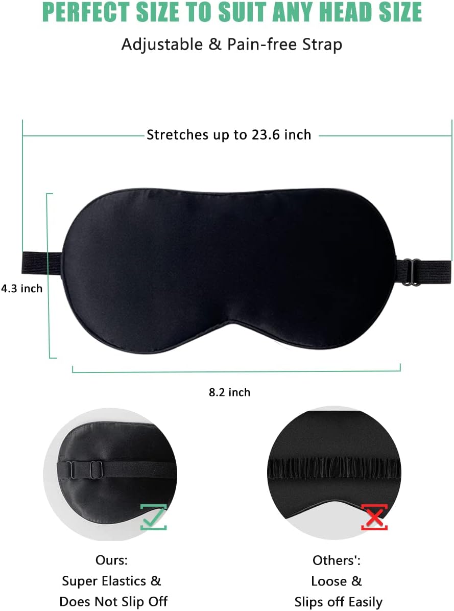 • Blink at Ease & Enjoy Sound Sleep in Any Position: BeeVines night eye mask for sleeping blackout is specially designed for rub-minimizing comfort. This both sides silk eye shades cover for women will keep your eyes shielded from annoying light without compressing your nose bridge, eyelids, and temples while you sleep. The adjustable pain-free strap of our blackout eye masks is specifically designed to be adjusted flexibly to allow you to sleep comfortably in any position.