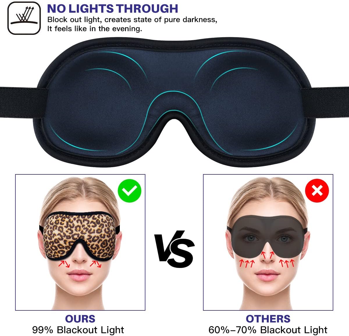 • ☀LATEST PRODUCT DESIGN - sleep mask 3D Contoured Eye Mask for Sleeping applies the combination of high-density green sponge and elastic cloth. It has long service life and is resistant to wear. It conforms to human engineering design well and perfectly fits with faces of almost all people. The design of nasal wing makes your sleeping mask not be easily moved so as to cause the light leakage. Its light blocking effect reaches 99% and it is suitable for different sleep modes of all users.
