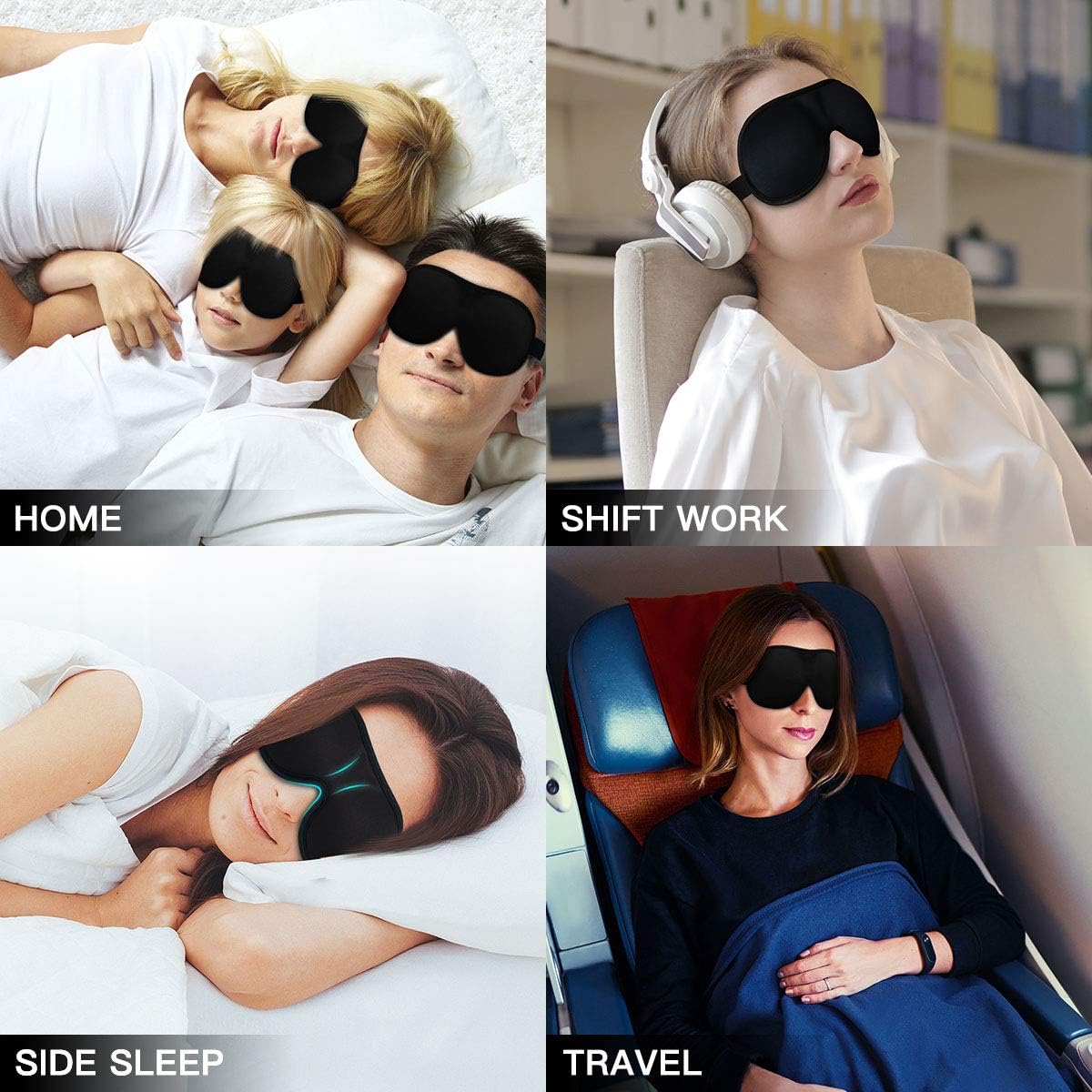 • ☀3D ERGONOMIC DESIGN - Sleeping Mask Has a unique wavy appearance with a protective curve feature and a 35 ° uplift design of orbital parts, and the orbital depth is 2cm, which has zero pressure to eyes, promoting sleep. Wear without disturbing your makeup, specially designed for female eyelash makeup.(Silk mask will oppress eyes)