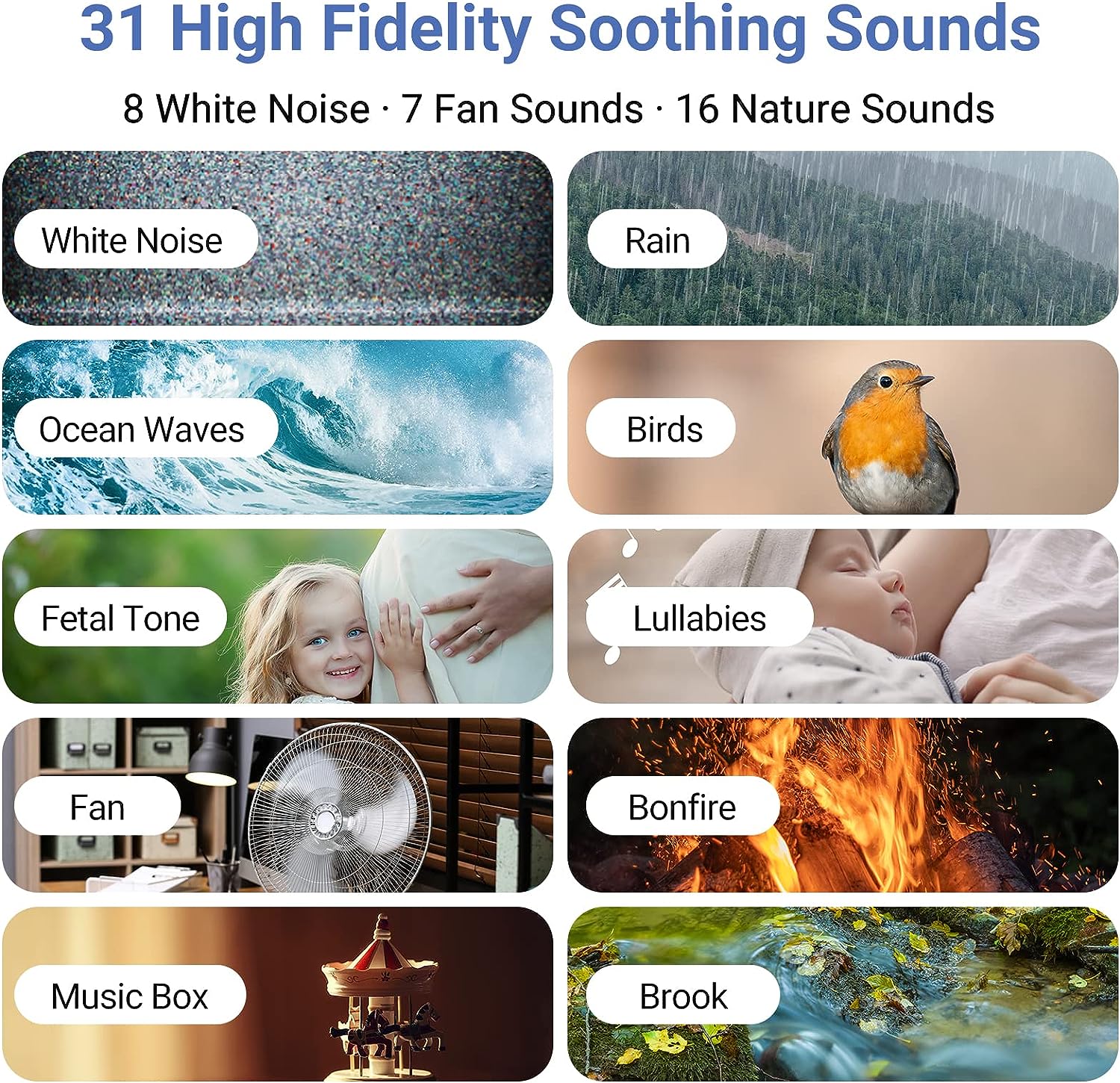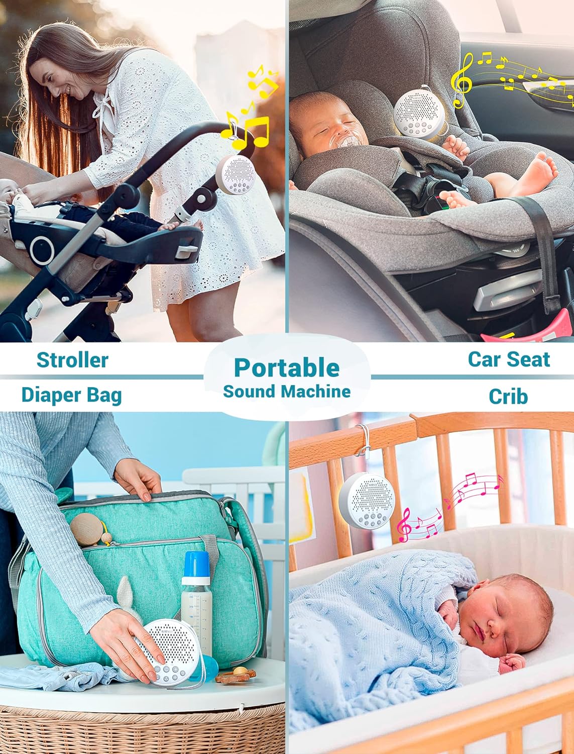 • [For various scenarios] Our white noise machine for sleeping will keep you and your babies away from the loud neighbourhoods, noisy car whistled, nearby dogs barking, and your husband snoring, enjoy every nice night. It can be placed in the bedroom, crib, office, yoga room, stroller, and whether it's soothing baby, working, meditating, relaxing or taking a nap, or on camping trips, our sounds are perfectly suitable and make you delight your mind and body and enjoy everything at the moment.