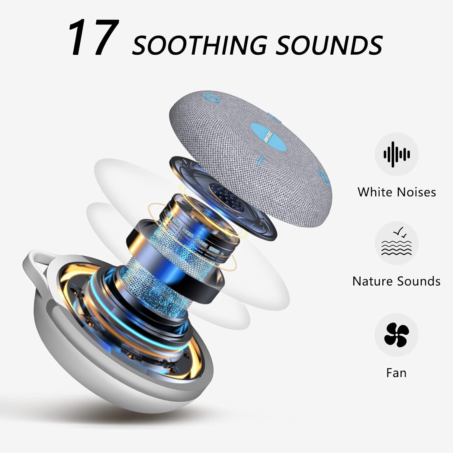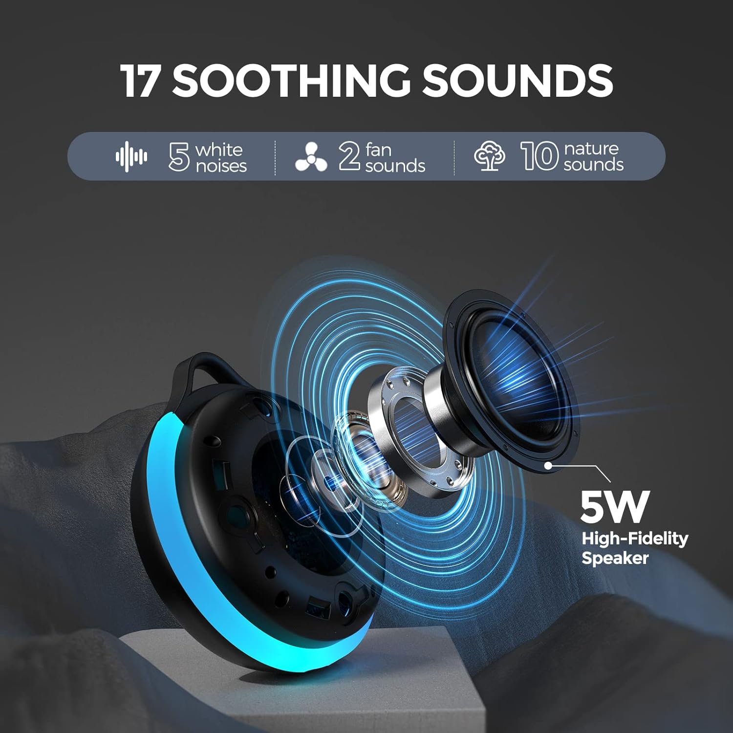 • 17 Soothing Sounds: Choose from 5 white noises, 2 fan sounds and 10 nature sounds including ocean, shushing, lullaby, fetal tone, campfire, summer night, rain, bird, brook and waves to mask distracting noises and let your baby sleep faster and better at night or during naps