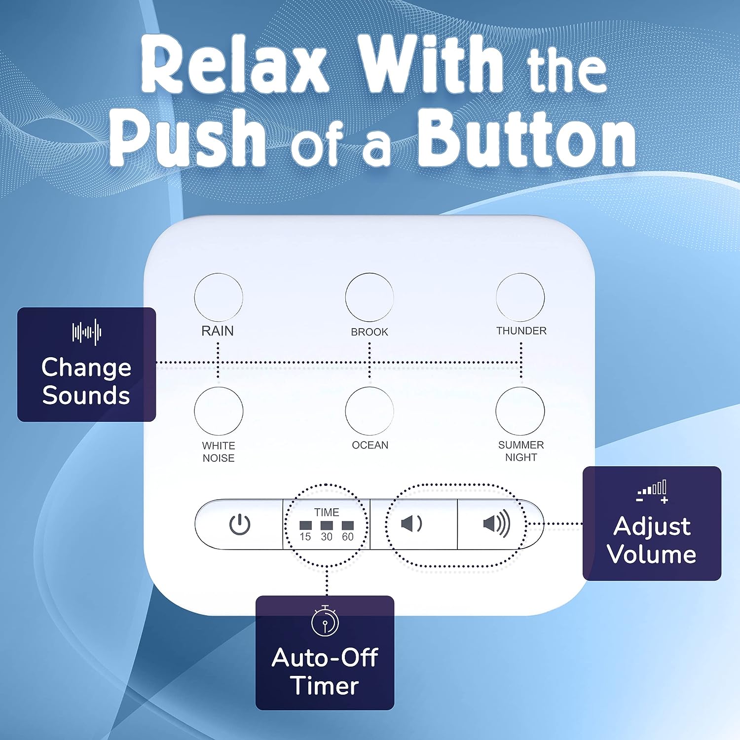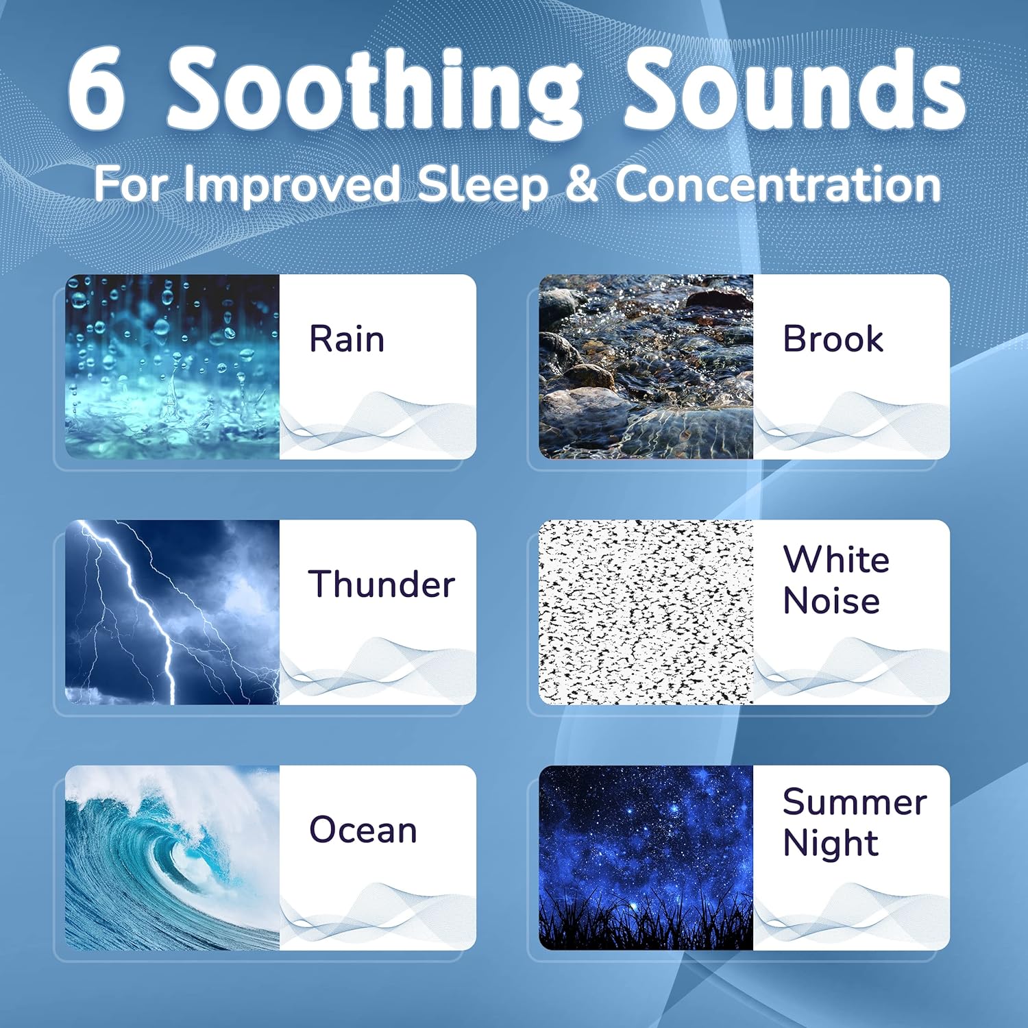 • MASK BACKGROUND NOISES - The white noise sound machine masks noise for improved sleep, concentration, and comfort. It blocks background noise while sleeping, working, or traveling to experience serenity in every situation. Relaxing sounds are also perfect for yoga, meditation, spas and more!