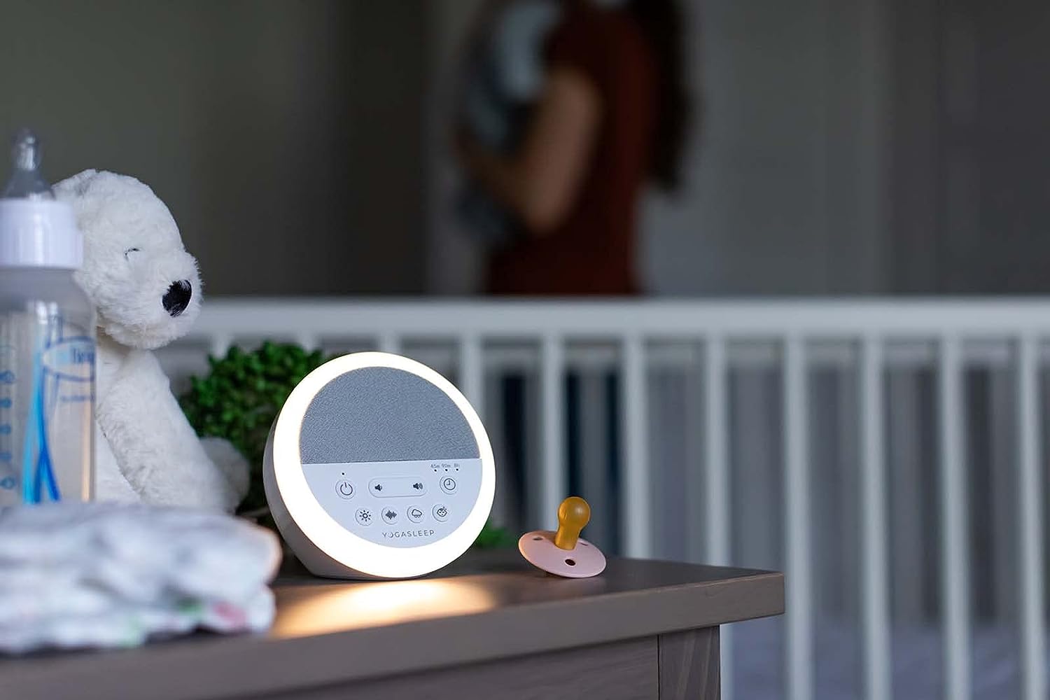 Help your baby or child fall asleep faster, stay asleep, and mask distracting noises with the Yogasleep Nod Sound Machine and Night Light. Featuring 20 sound options including white noise, fan sounds, nature sounds, and eight lullaby tracks. The Nod has a soft, dimmable night light in amber tones that soothes rather than disrupts sleep cycles. Run the sound machine all night long or set the auto-off timer with three timer options: 45 minutes, 90 minutes, or 8 hours. Sleek and compact unit fits seamlessly with any bedroom or nursery. Easy to operate with a simple and user-friendly interface. Yogasleep has 50+ years of making the best white noise machines for home, baby, and work