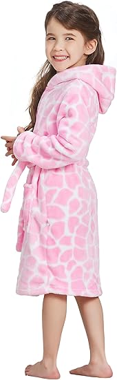 Boys Girls Robe Hooded Bathrobe Toddler Robes Soft Coral Fleece Pajamas Unisex Dressing Gown for Kids