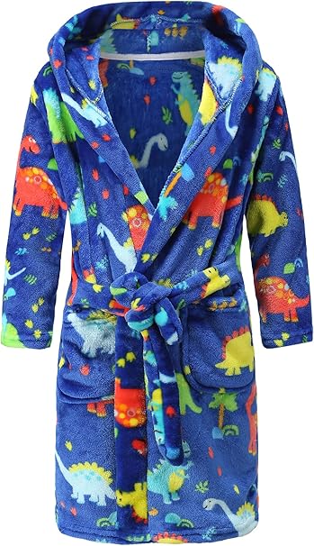 Boys' Hooded Bathrobe Kids Plush Fuzzy Fleece Robe Teen boy Soft Spa Robe Girls Sleepwear pajamas Toddler Nightgown