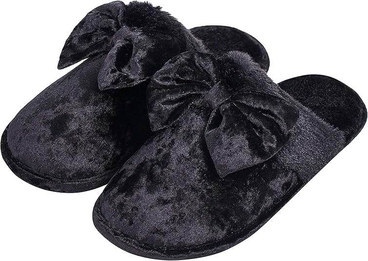 DL Womens-House-Slippers-Memory-Foam, Fluffy Velvet Slip on Scuff Slippers For Women Indoor, Warm Furry Ladies Bedroom Slippers With Non slip Outsole Pink Gray