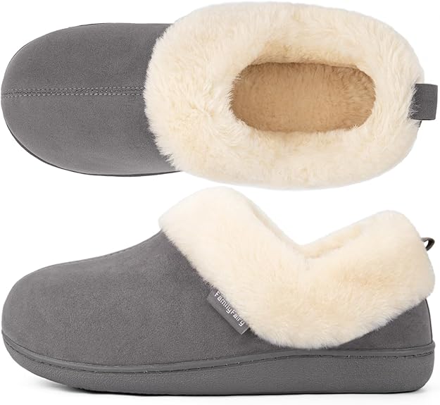 FamilyFairy Women Memory Foam Bootie Slippers, Warm Cozy Micro Suede Slipper Boots with Fuzzy Plush Lining and Collar, Winter Non Slip House Shoes for Indoor Outdoor