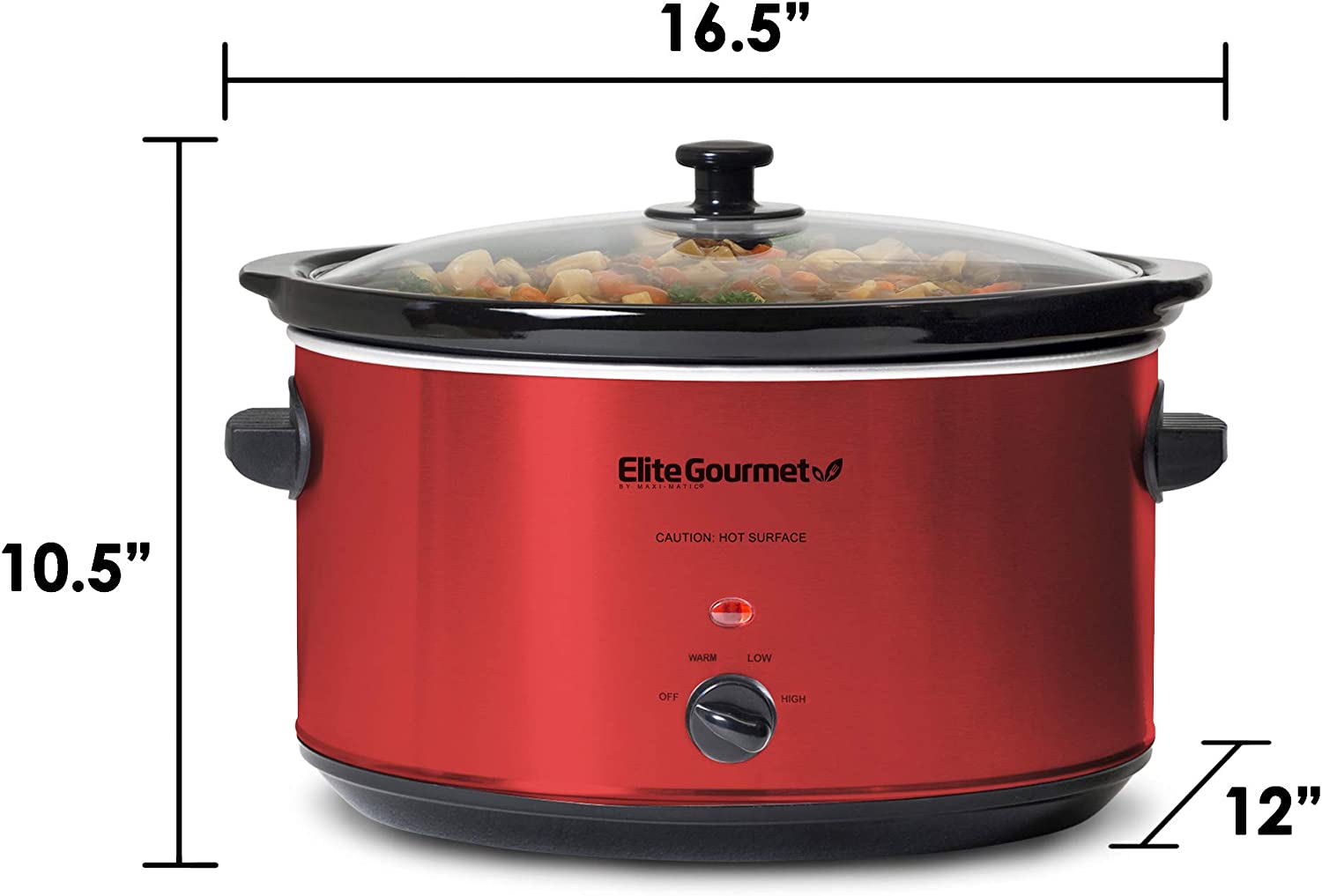Elite Gourmet MST-900RXT Electric Ceramic XL Jumbo Slow Cooker, Adjustable Temp, Entrees, Sauces, Stews & Dips, Dishwasher Safe Glass Lid & Crock, 8.5 Quart, Metallic Red