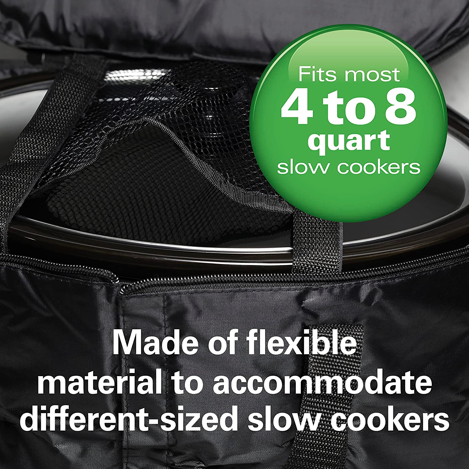 Hamilton Beach Portable Slow Cooker Travel Bag, Insulated Carrier Case for 4, 5, 6, 7 & 8 Quart Crock, Internal Mesh Net Holds Pot in Place, Compatible with Other Brands, Black (33002)