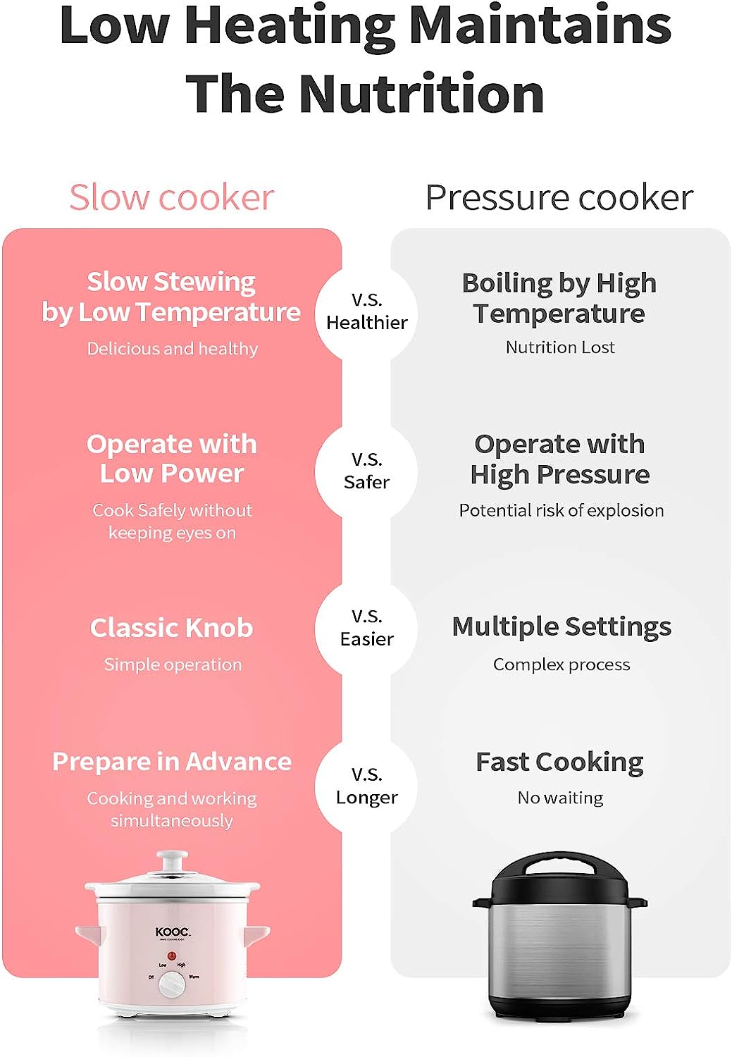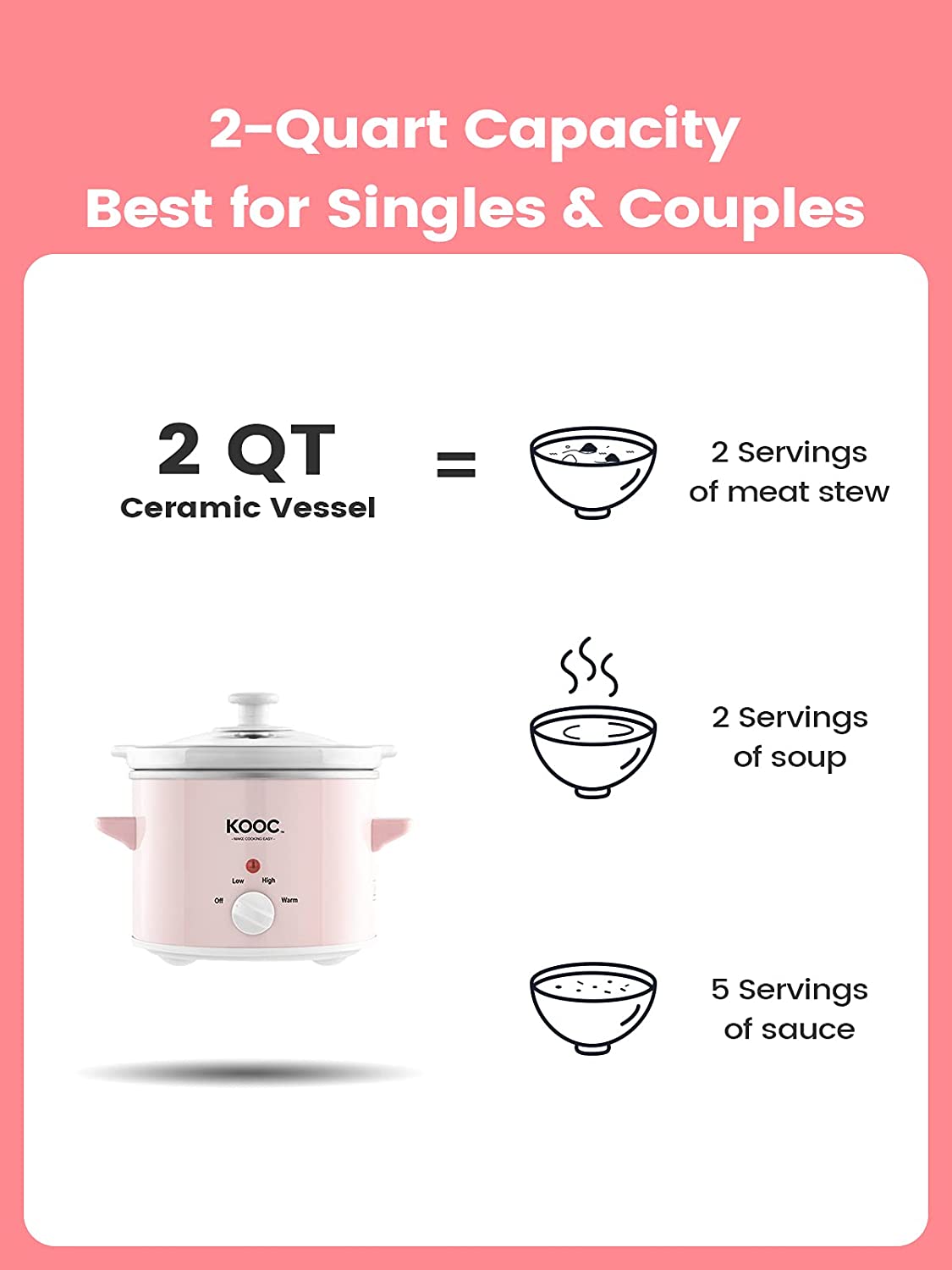 • [HEALTHY SLOW STEW] KOOC slow cooker helps to reduce the nutrient loss of food material through low power operation, a healthier way to cook.