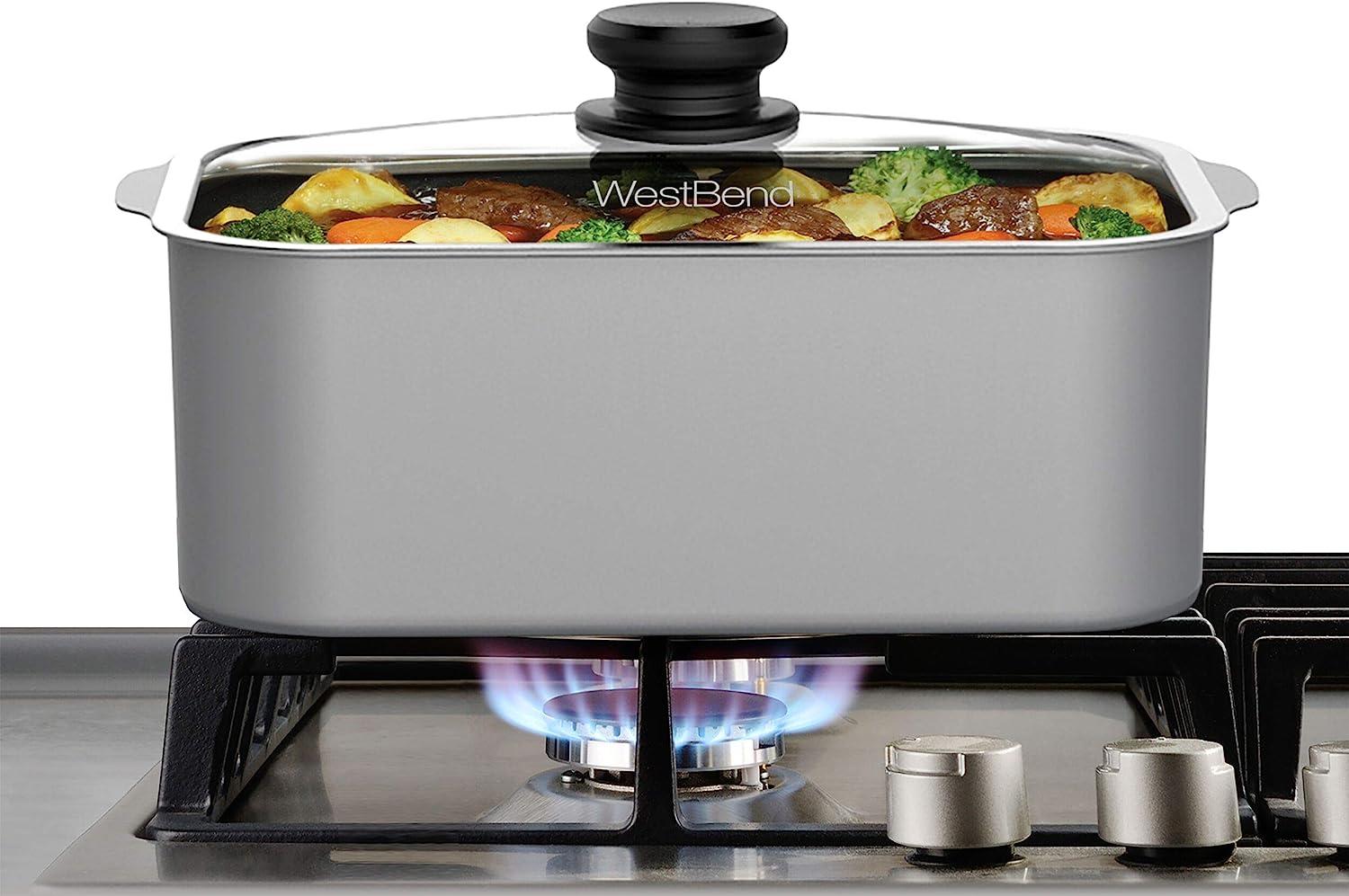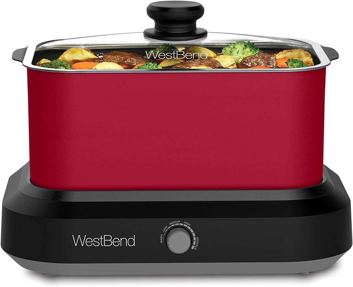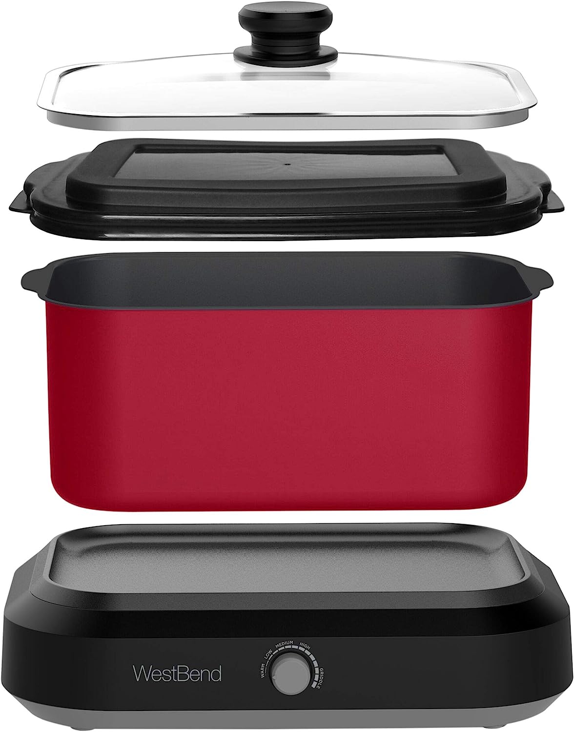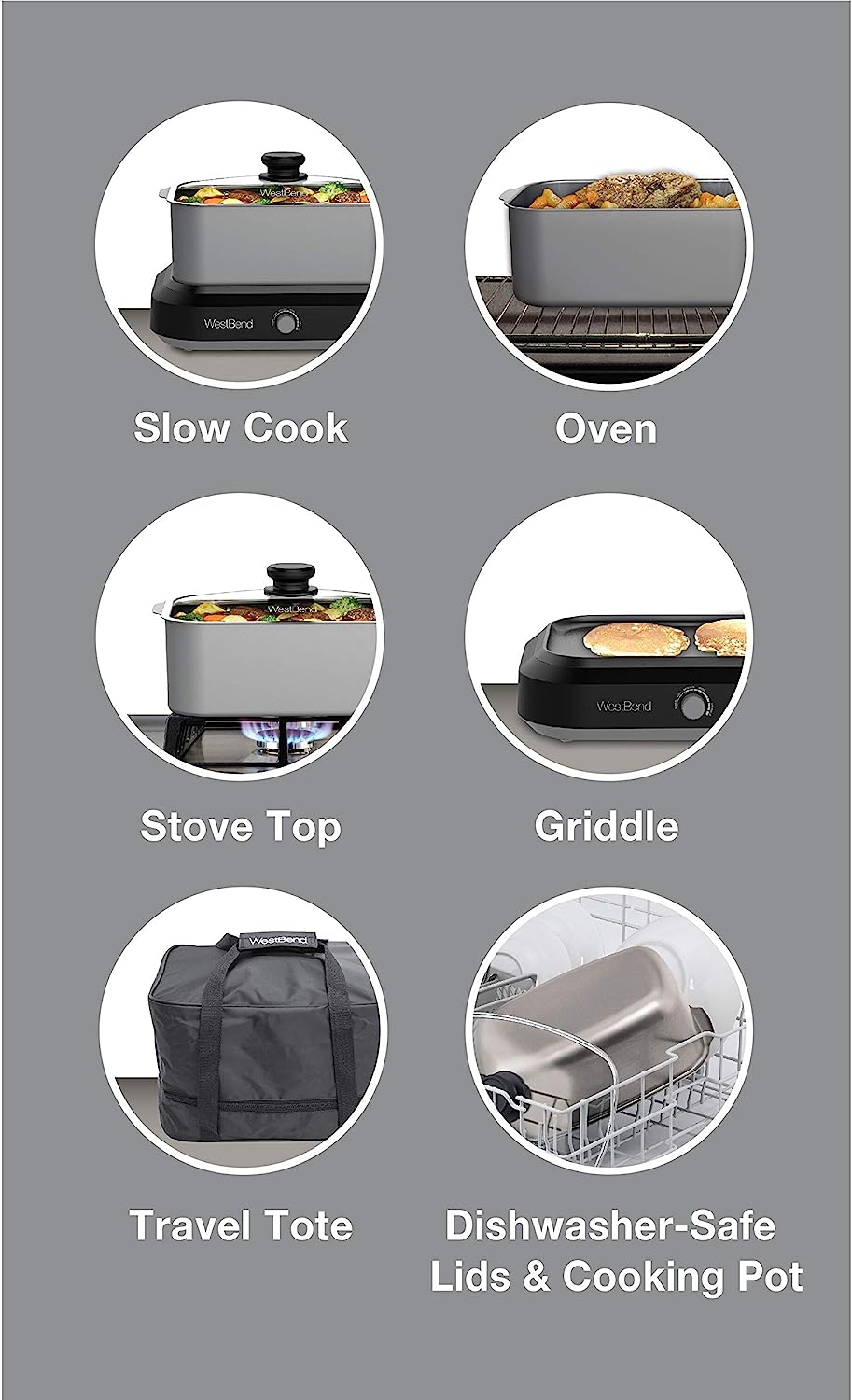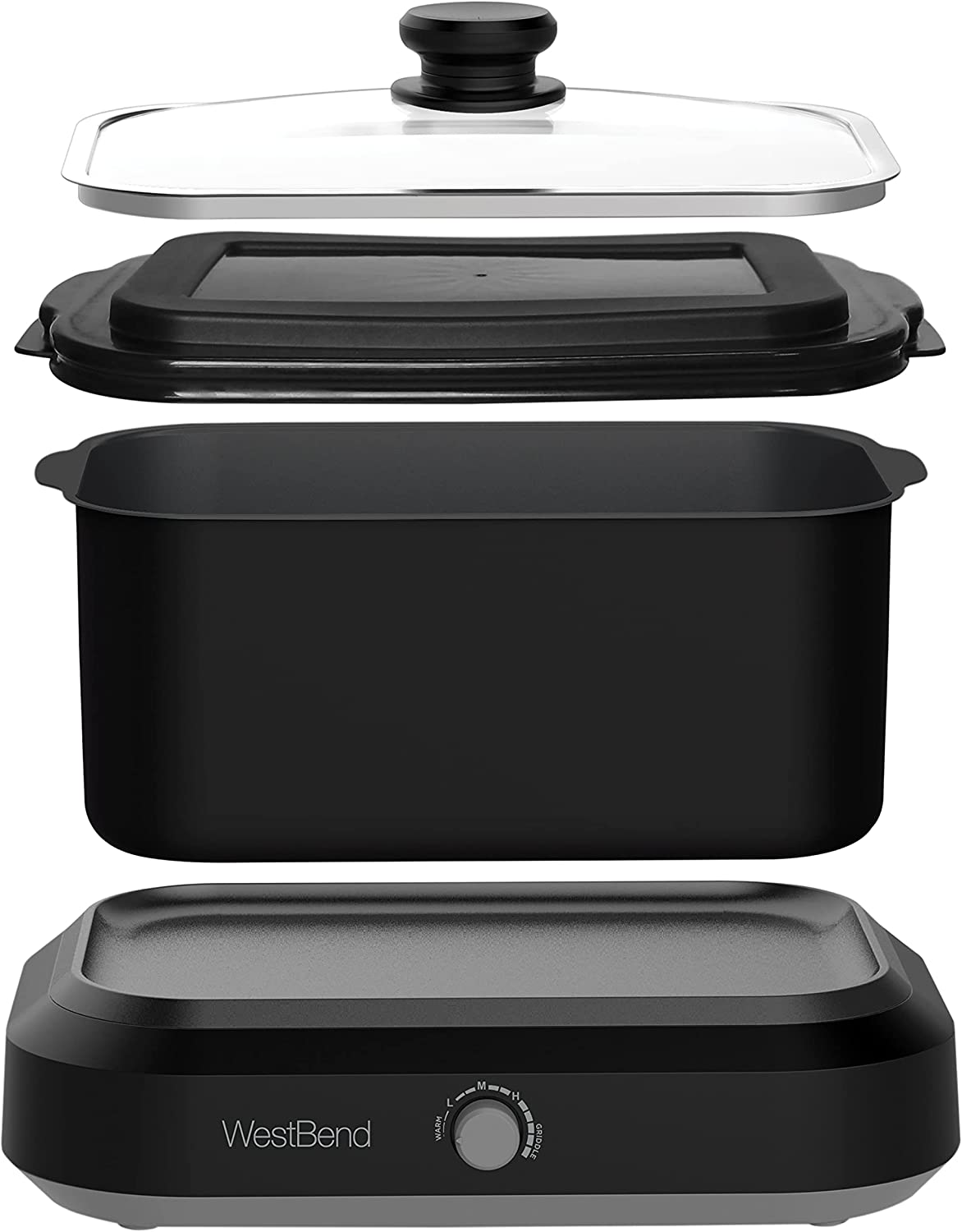 If you need to cook it, we'll give you the versatility to make it! The West Bend Versatility Cooker is your “go-to” tool for easy breakfasts, lunches, and dinners. In one kitchen appliance you get a slow cooker, oven-ready roaster, 6-quart pot with lid, and electric griddle. Plus, this 6-quart slow cooker includes a dishwasher-safe lid and cooking pot, so cleanup is a breeze.