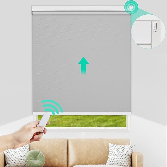 Allesin Motorized Roller Blinds with Remote Control for Windows, Blackout Smart Roller Shade, Battery Powered Smart Blind-Gray, 34"x72"