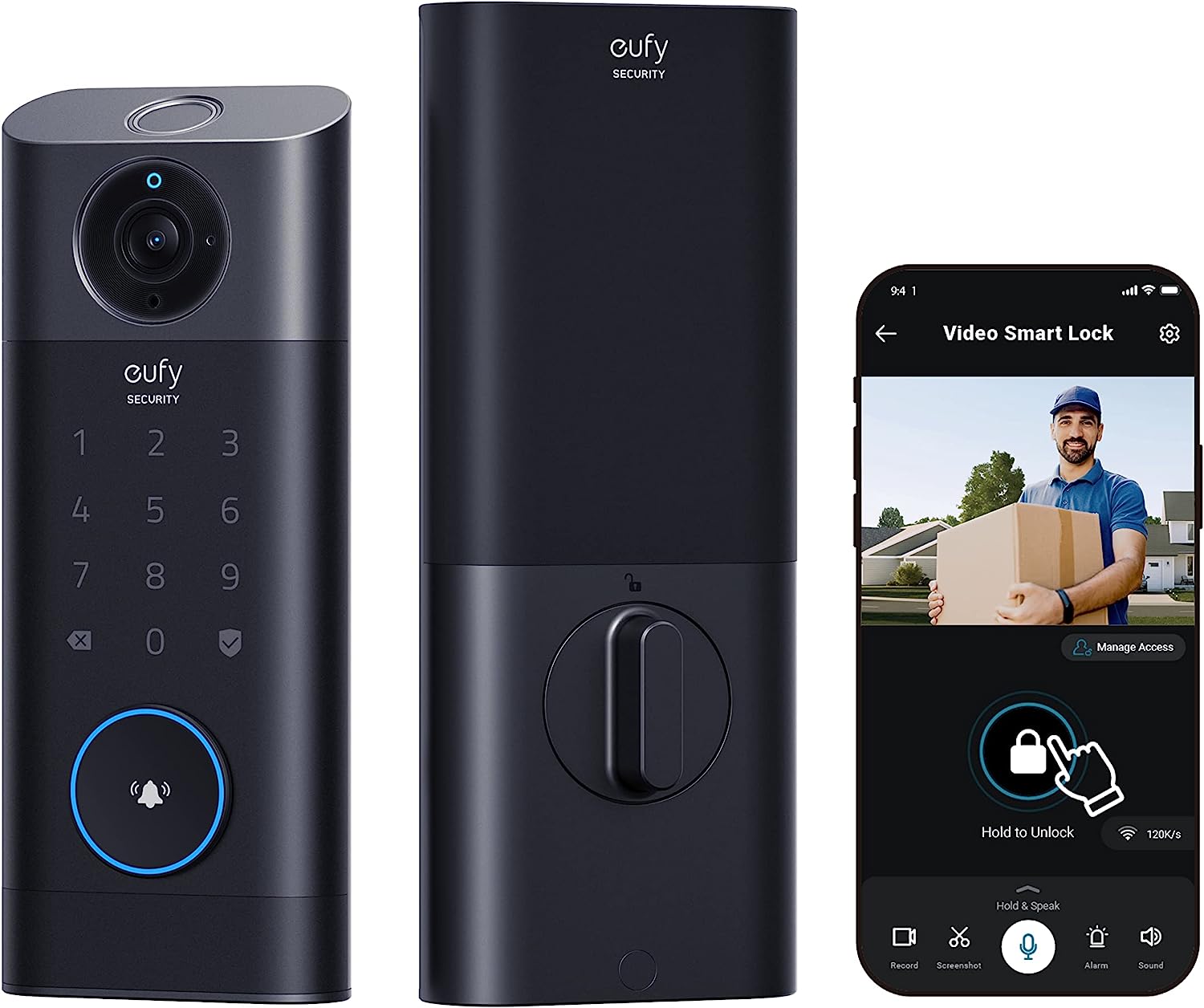 • 5 Easy Ways to Unlock: The cutting-edge chip and ultra-thin fingerprint film recognize you in 0.3 Seconds, and unlock your door in 1 second. You can also control your Smart Lock from the eufy Security App, by talking to your Alexa or Google Voice Assistant, or using the keypad or keys.