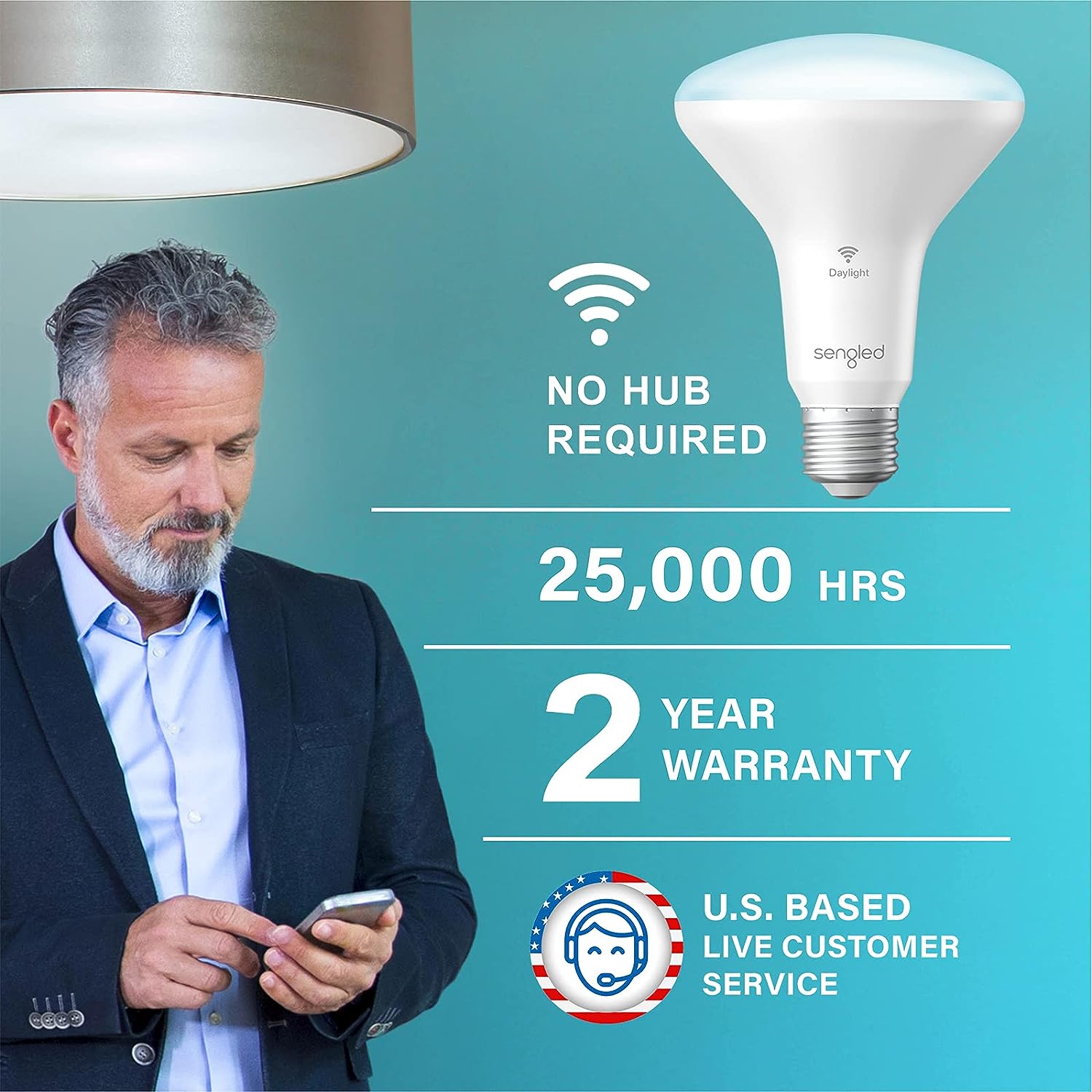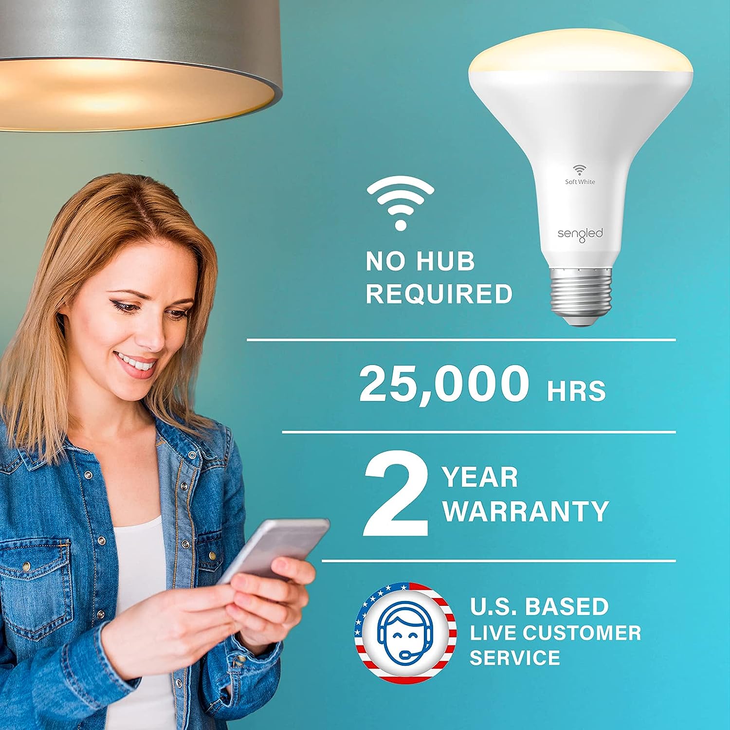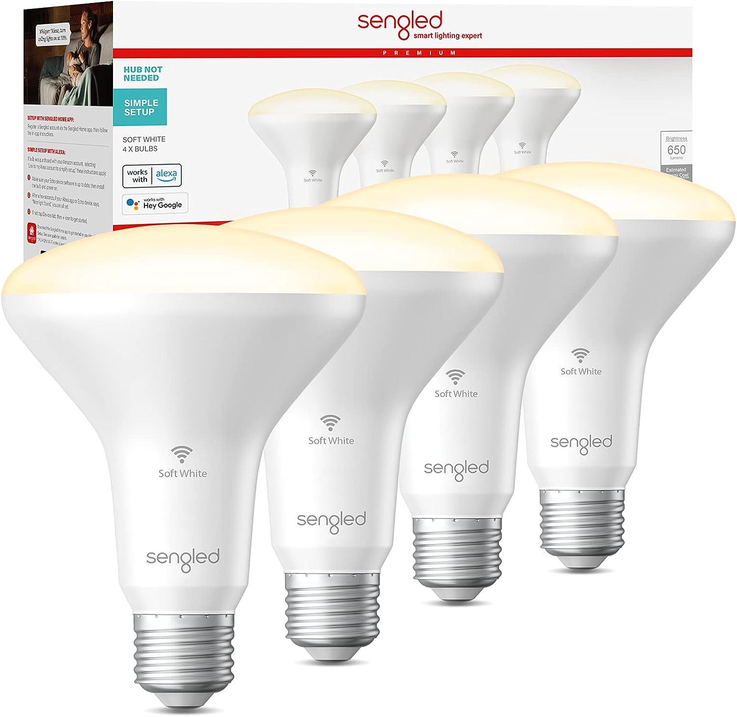 Sengled Alexa Light Bulb, BR30 LED Smart Bulb, Smart WiFi Flood Light Bulb, Smart Bulbs That Work with Alexa & Google Assistant, 7.5w, E26, 60W Equivalent, No Hub Required, 2.4Ghz WiFi Only, 4 Pack