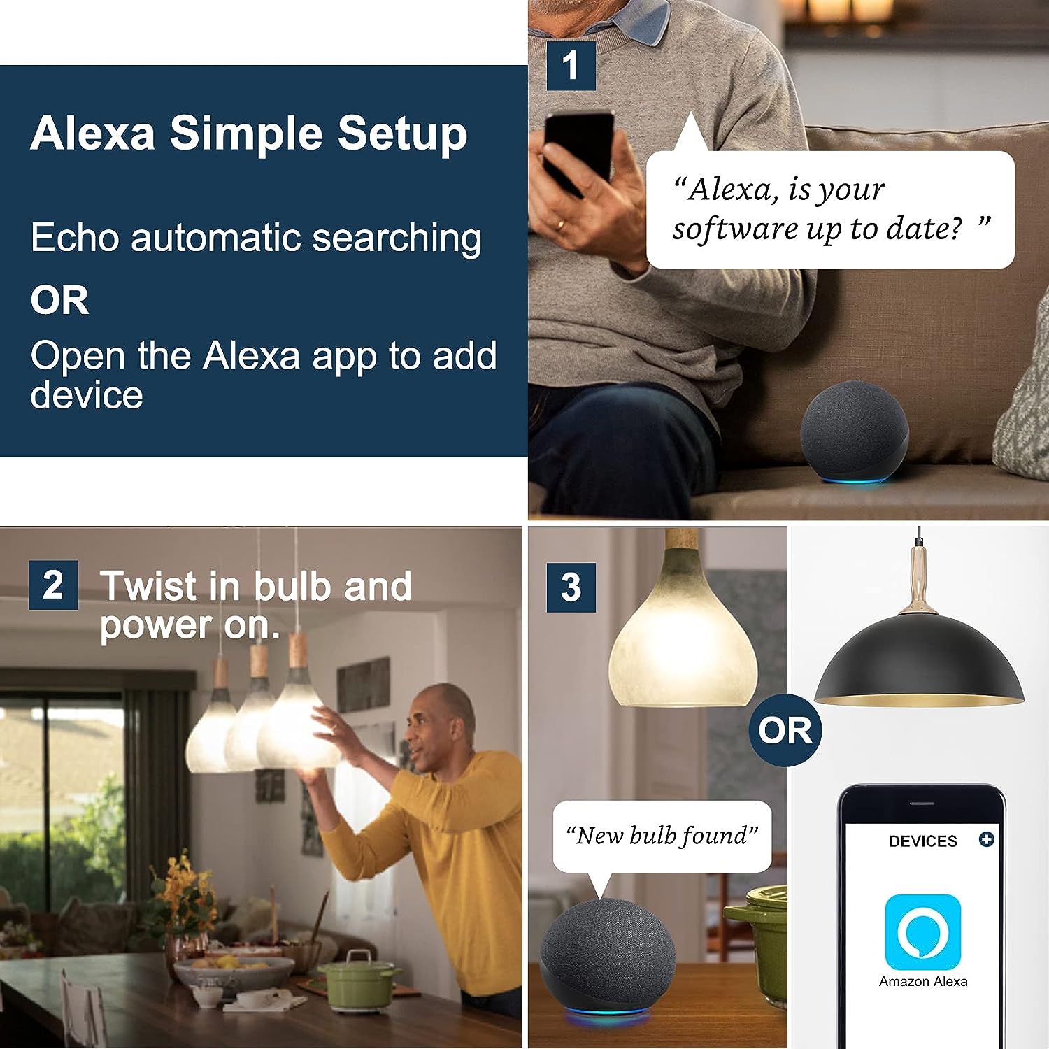 • 【WiFi & No Hub Required】- No hub or extra hardware required.WiFi alexa light bulb can easily connect to your home's 2.4GHz WiFi network.BR30 Dimmable Flood Light Bulb, the first step to starting a whole smart home. Note: 5GHz is not supported.