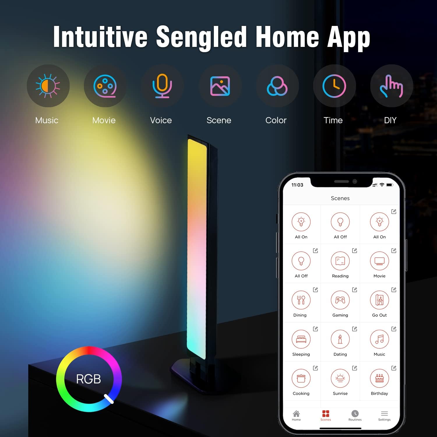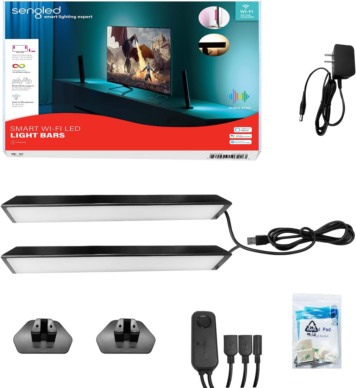 Enhance TV/Movie/Sports/Gaming experiences with the Sengled Smart Wi-Fi LED Multicolor Light Bars. Sleek and stylish light bars can be mounted to flat surfaces or stand in various directions. Control your lights in multiple ways – On/Off, dimming, color change, color temperature change, schedule, scene setting. Dynamic audio-sync with built-in microphone for movie mode, game mode, music mode and more. Voice control using Amazon Alexa or Google Assistant.