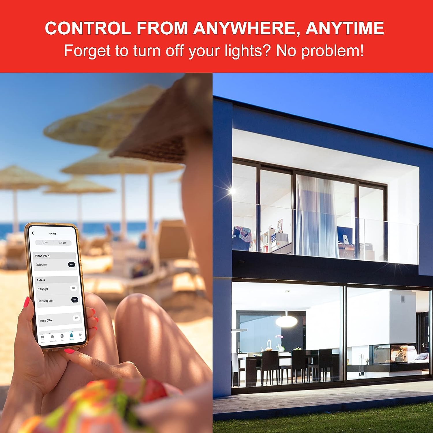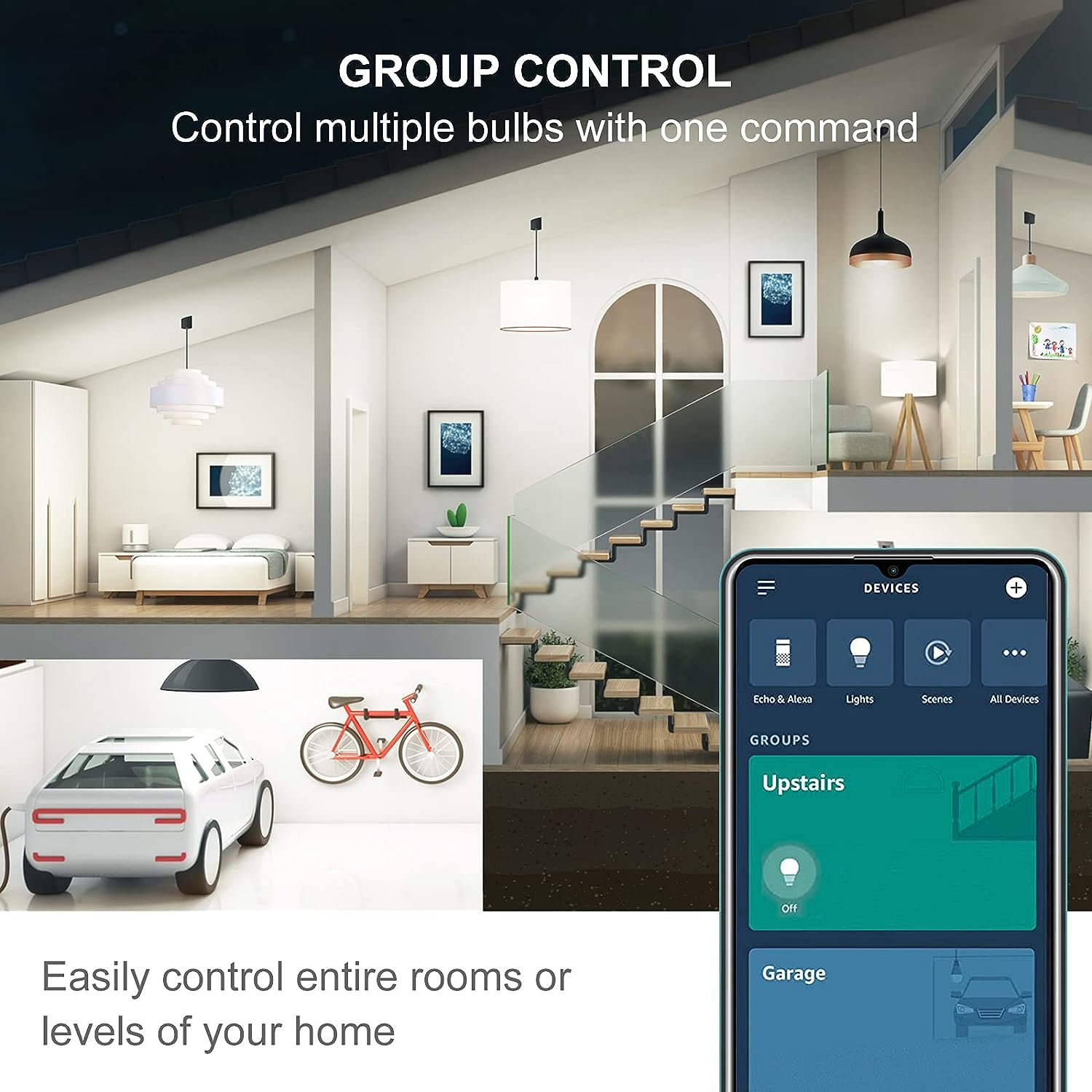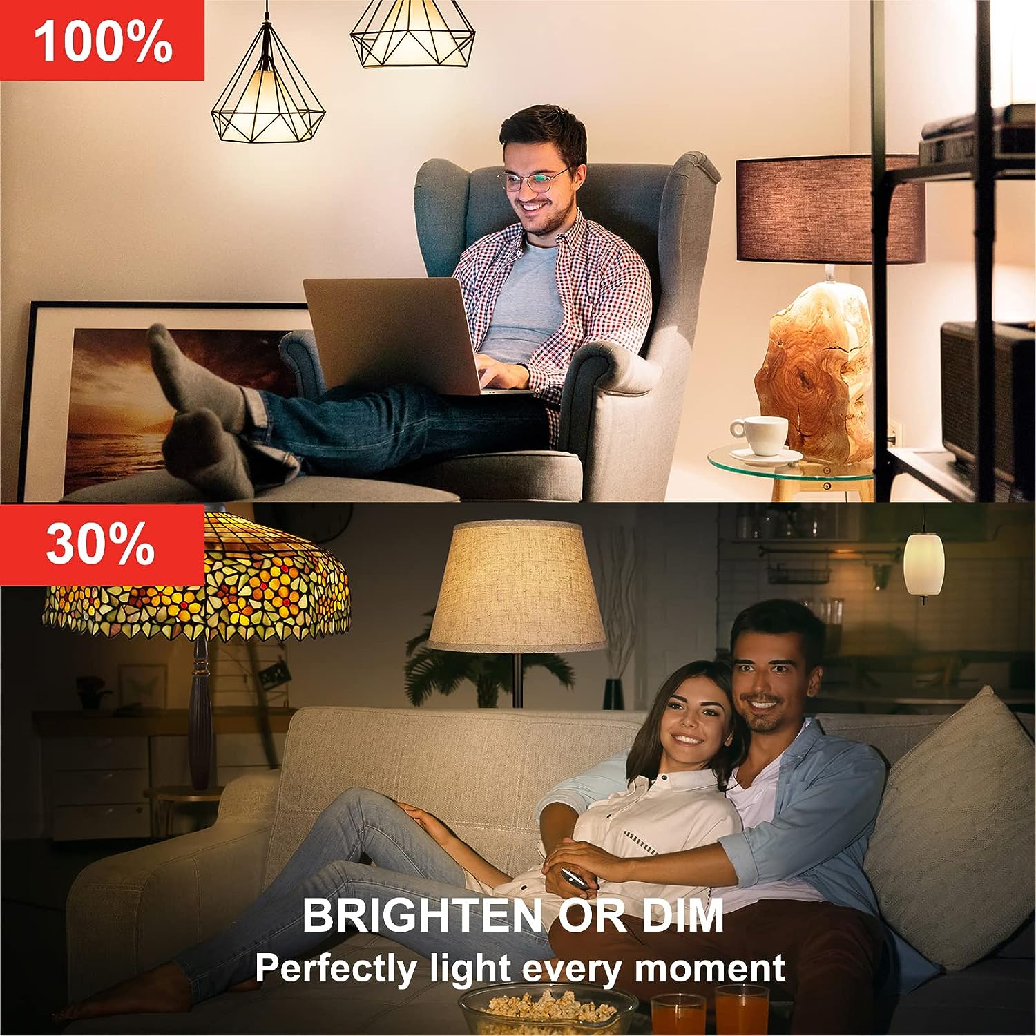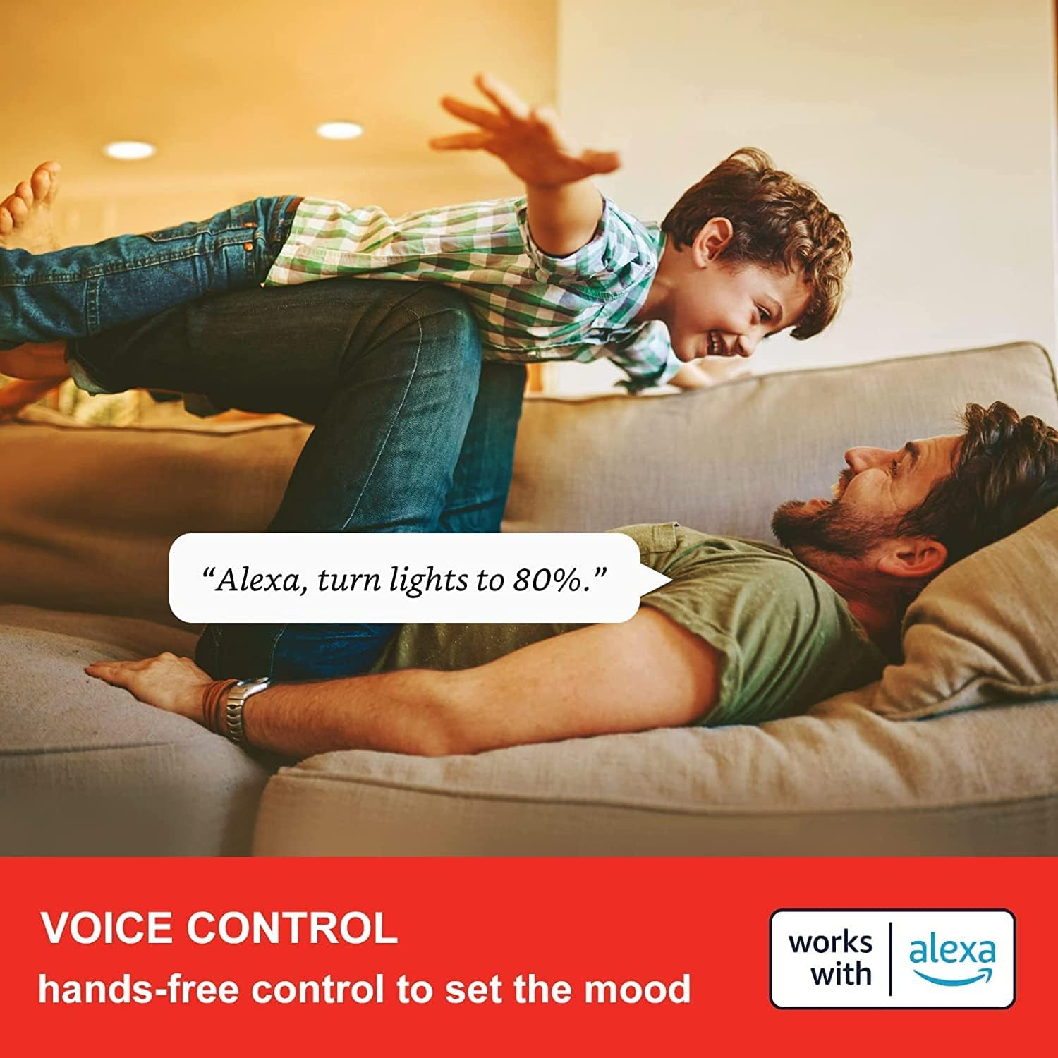 • Smart Voice Control: Use hands-free Voice Control to turn on, off, or adjust brightness of the smart light bulb. Our smart light bulbs have a dimmable range from 5% to 100%, allowing you to adjust the light settings for a morning-to-night ambience.