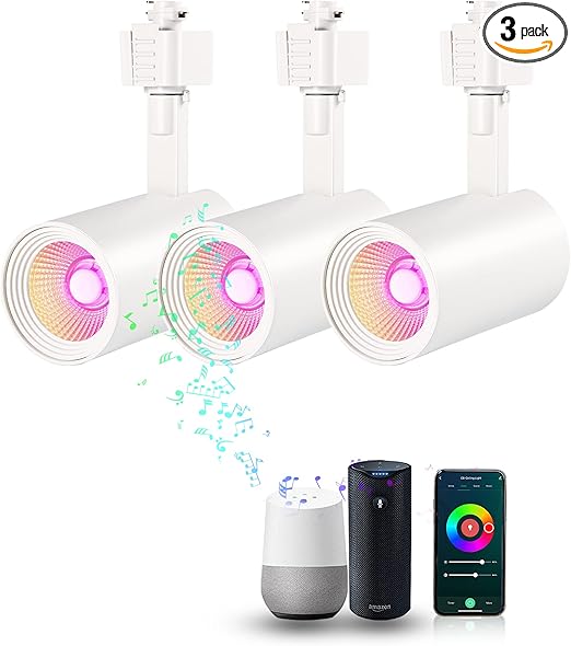 CLOUDY BAY [3 Pack] 11W Smart WiFi LED Track Lighting Heads, Track Light Heads Compatible with Alexa Google Home, RGBCW Color Changing, No Hub Required, 2700K-5000K, CRI 90+, 750LM, White