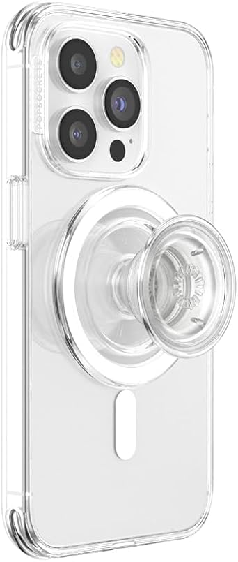 PopSockets Phone Grip Compatible with MagSafe, Adapter Ring for MagSafe Included, Phone Holder, Wireless Charging Compatible - Clear