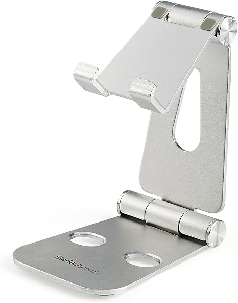 StarTech.com Phone and Tablet Stand - Foldable Universal Mobile Device Holder for Smartphones & Tablets Adjustable Multi-Angle Ergonomic Cell Phone Stand for Desk Portable, 4in to 13in (USPTLSTND)