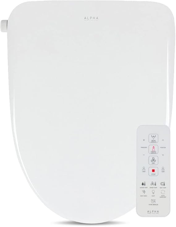 ALPHA BIDET UX Pearl Bidet Toilet Seat in Elongated White | Ultra Low Profile | Endless Warm Water | Arced Stainless Steel Nozzle | LED Nightlight | Dryer | Deodorizer | 3 Year Warranty
