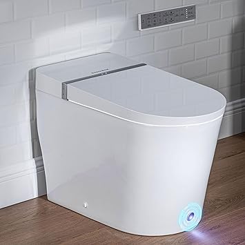 Casta Diva Smart Toilet with Built-in Bidet, Hands-Free Auto Open/Close, Wider Heated Seat, Foot Sensor Flush, Off-Seat Auto Flushing, Touch Panel Remote, 1.28GPF(CD-K010)