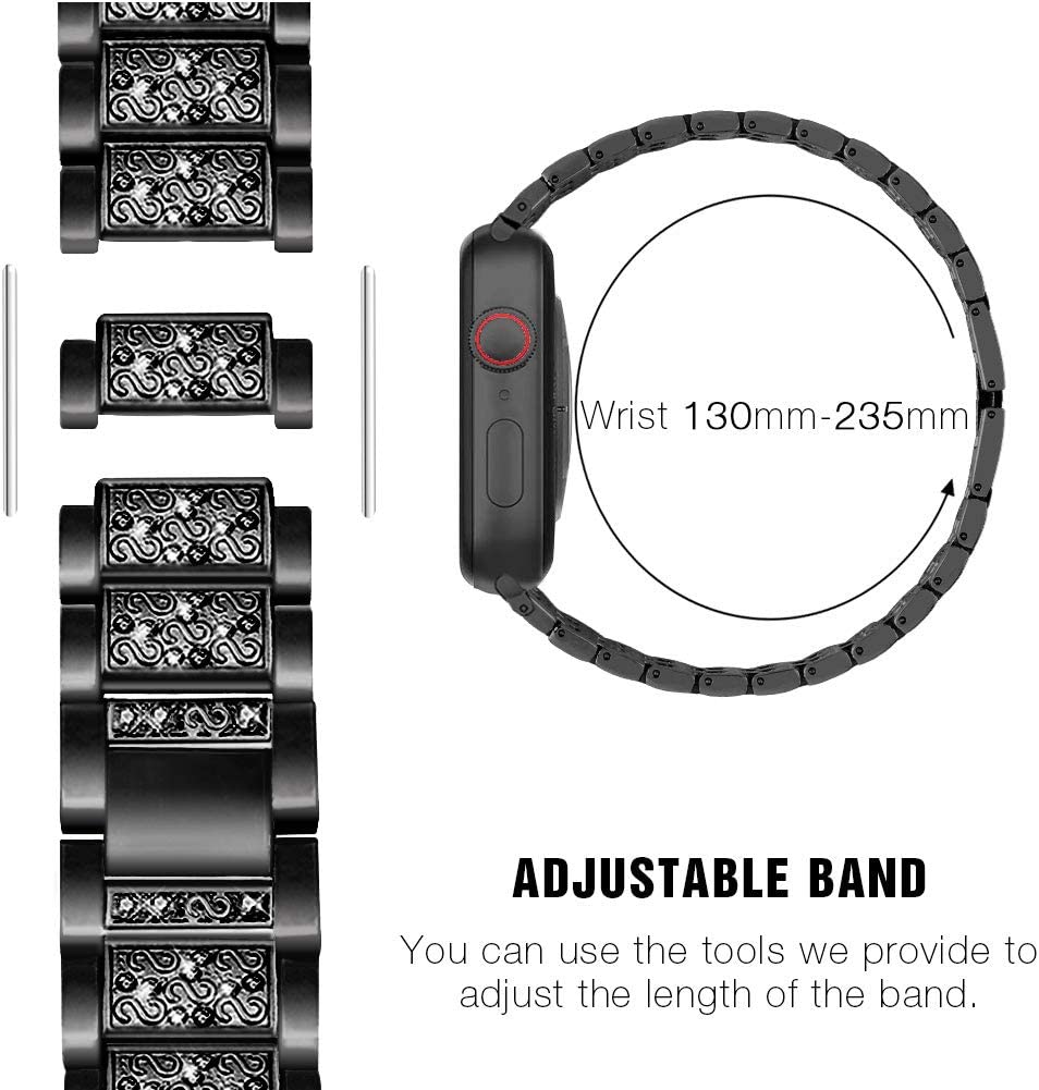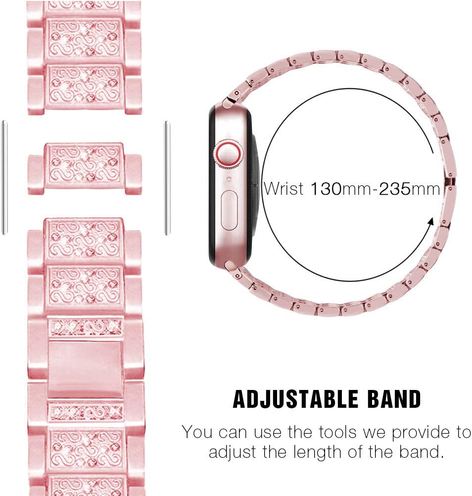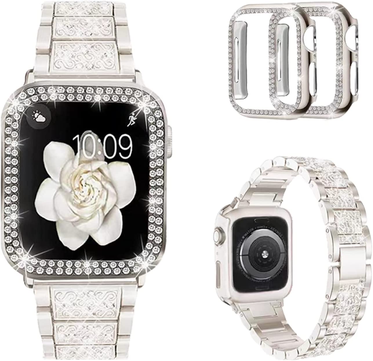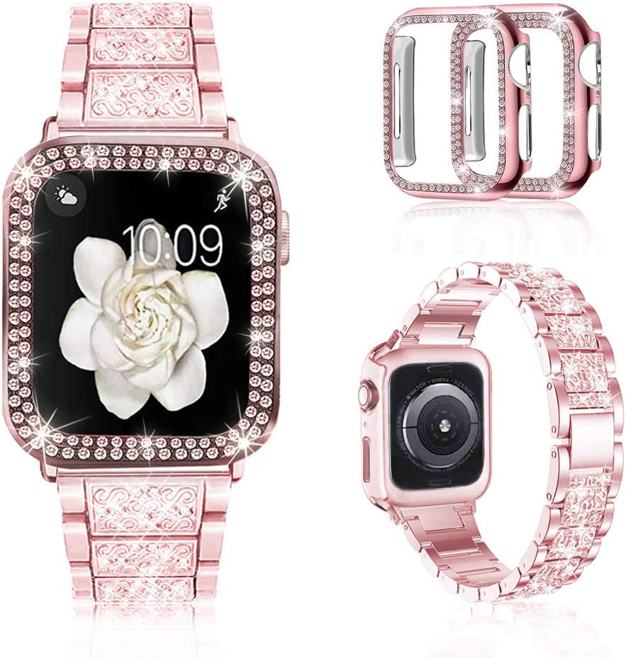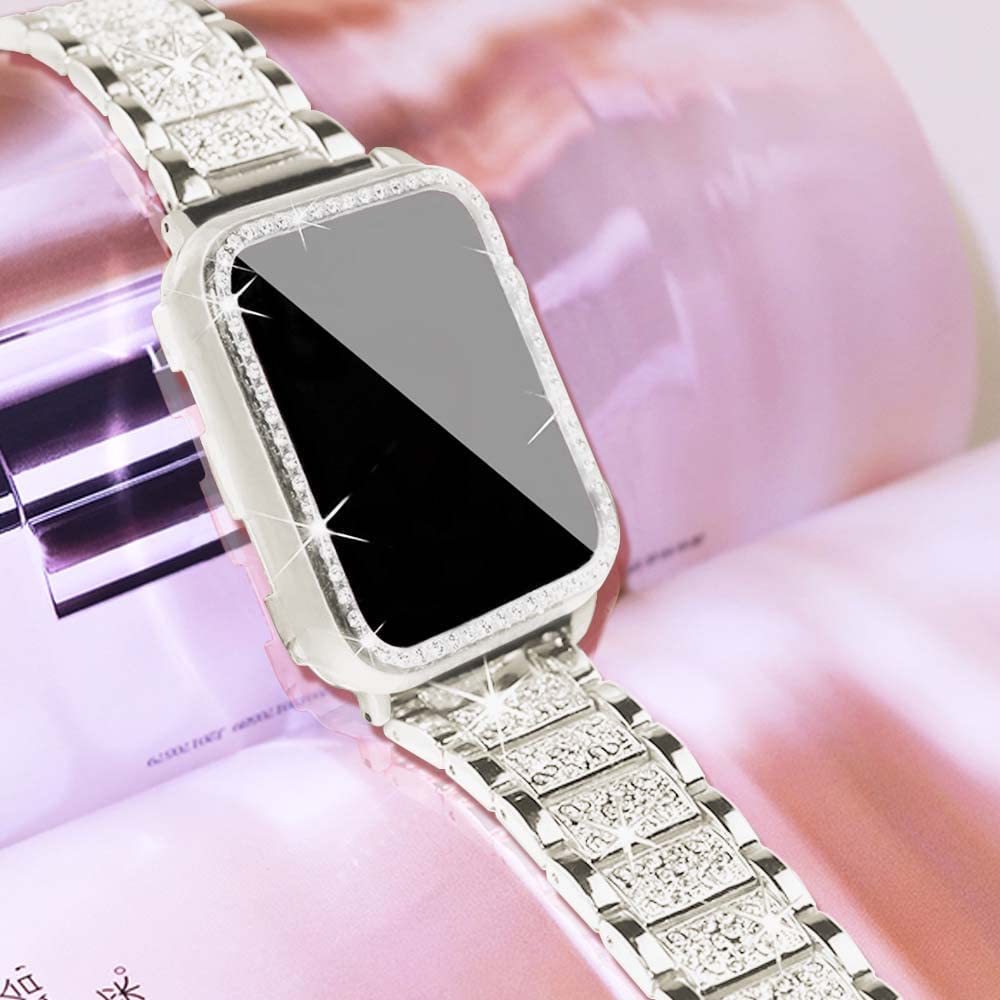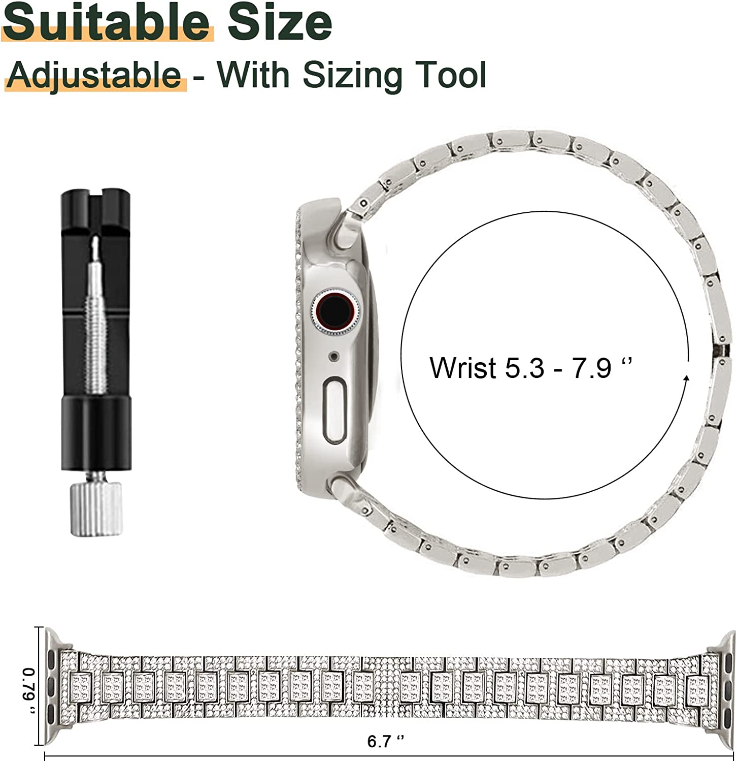 • ❤Band Material: Made of premium metal material with shinny rhinestones decoration, well polished, no sharp edges, water/sweat-proof, robust to use. Good gift for multifarious watch band lovers, well fits with different outfits and occasions.The PC case is made of premium polycarbonate, no deformation and discoloration, protects the Watch and around edges from shocks or scratches.