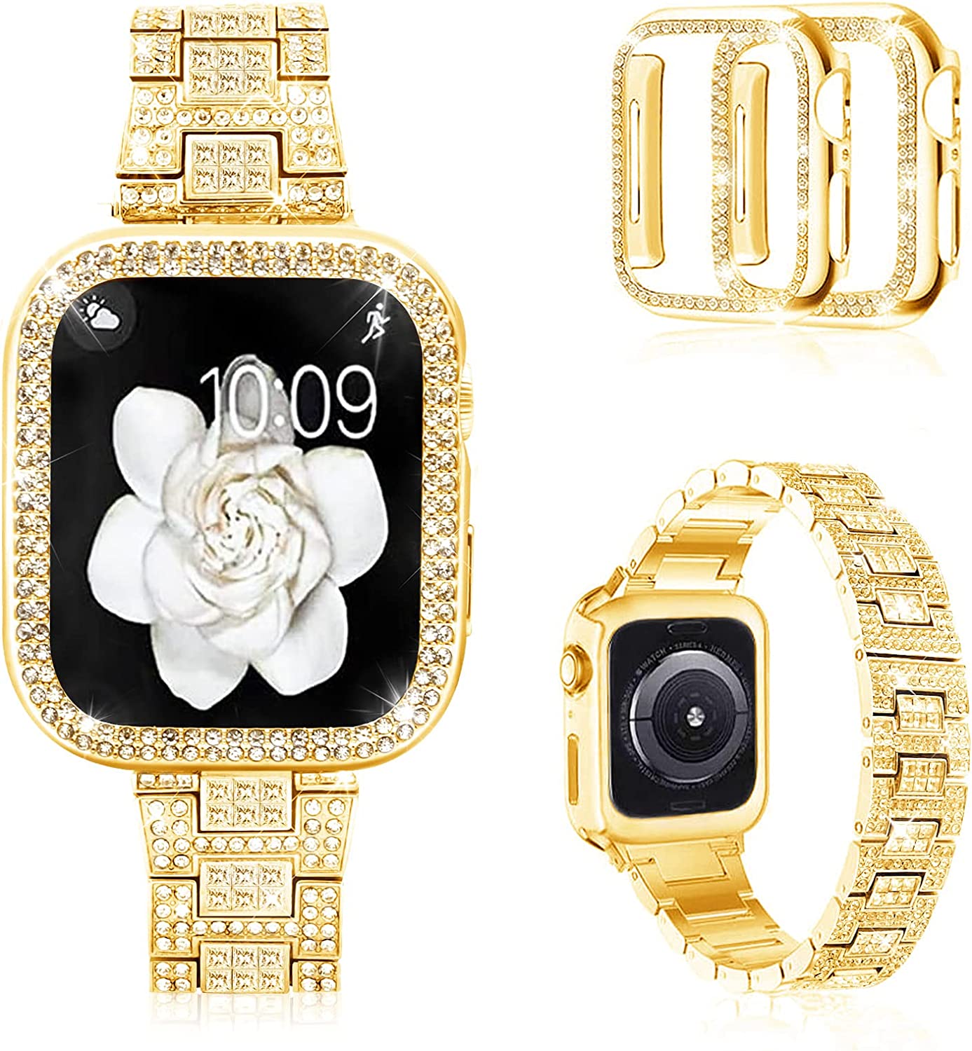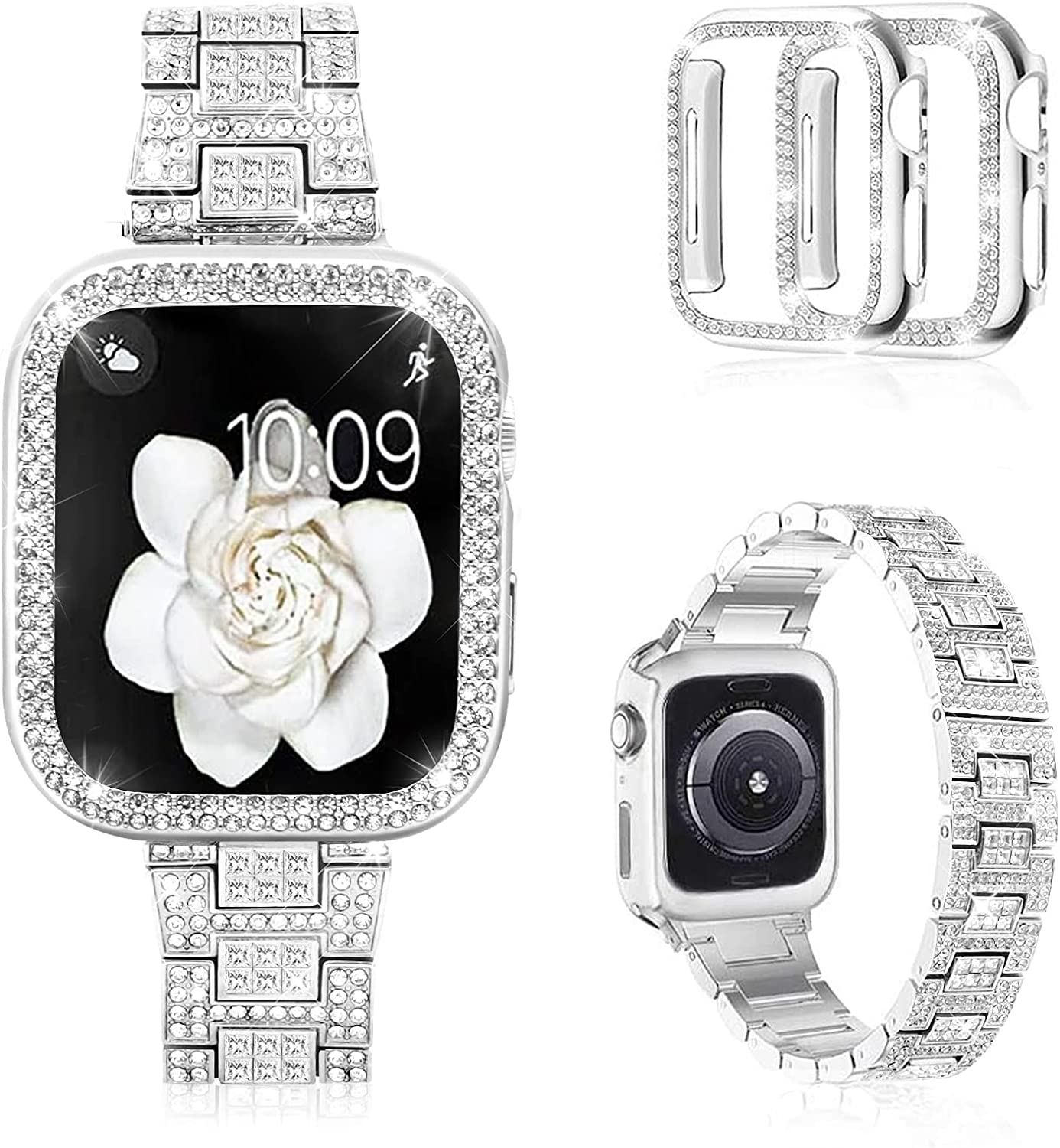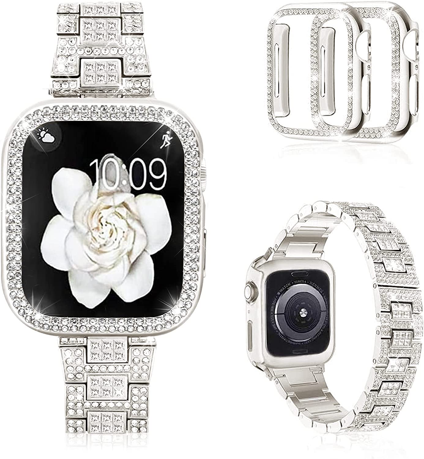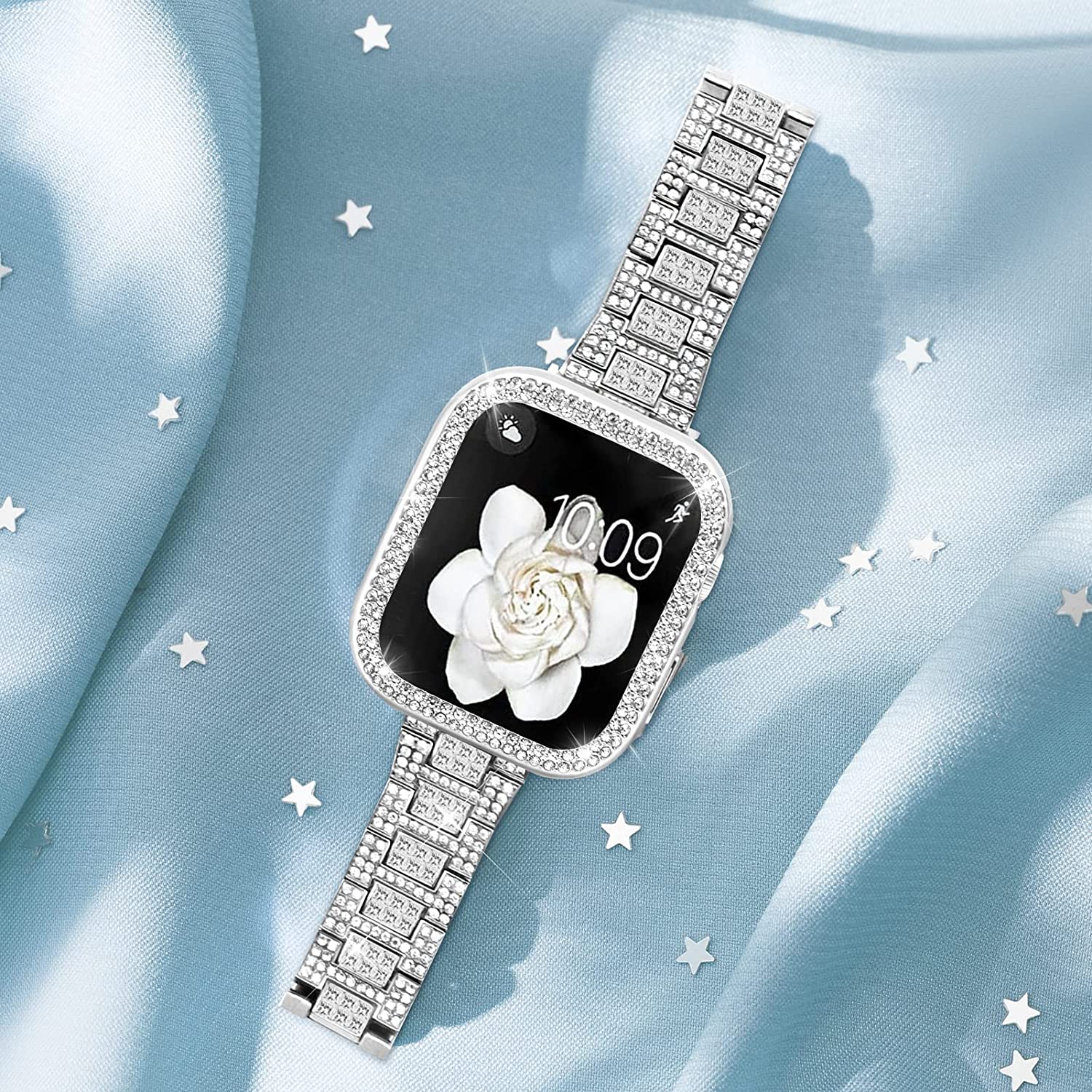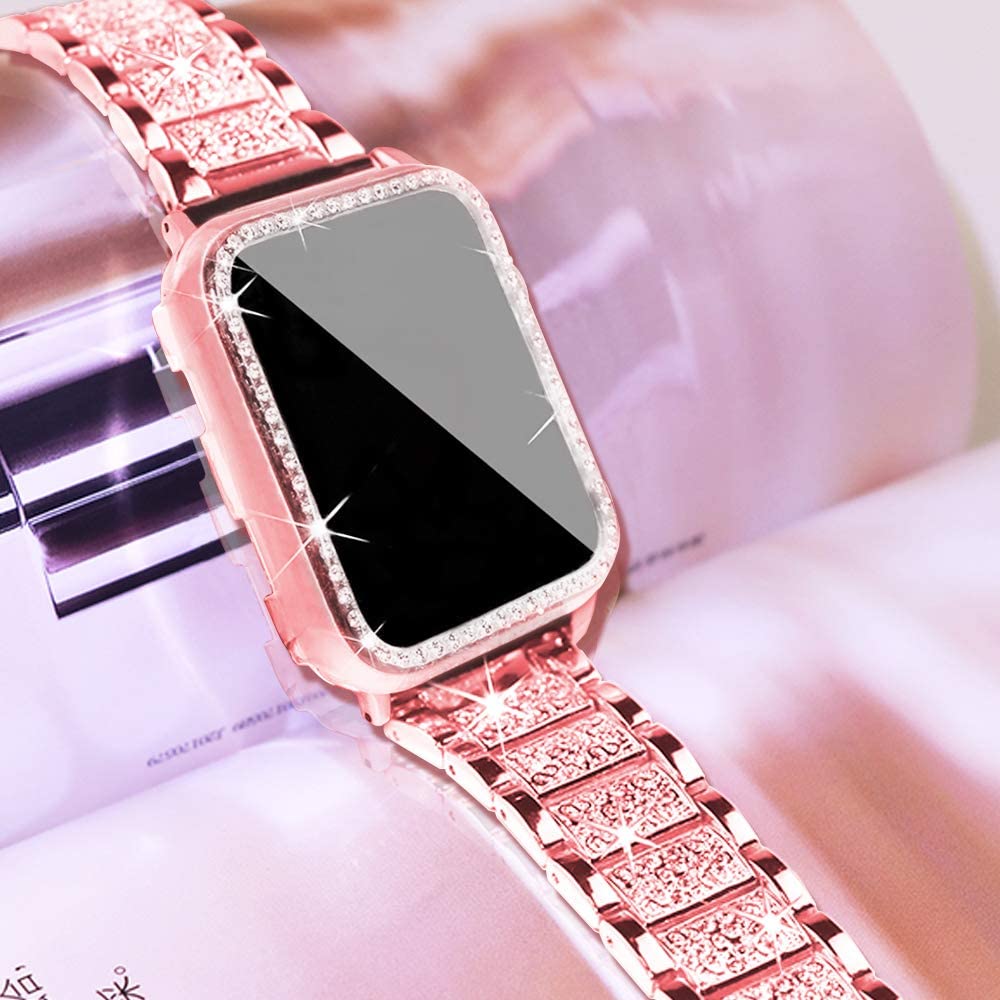 • ❤Pretty Design: Set with eye-catching bling crystal, metal band will make your watch receive many compliments, as well match up the same attractive bling watch case, which is the best choice for watch decoration and protection. The two kinds of PC cover makes your watch look luxury and attractive(This case just protect 4 Edges, Not includes screen protector).