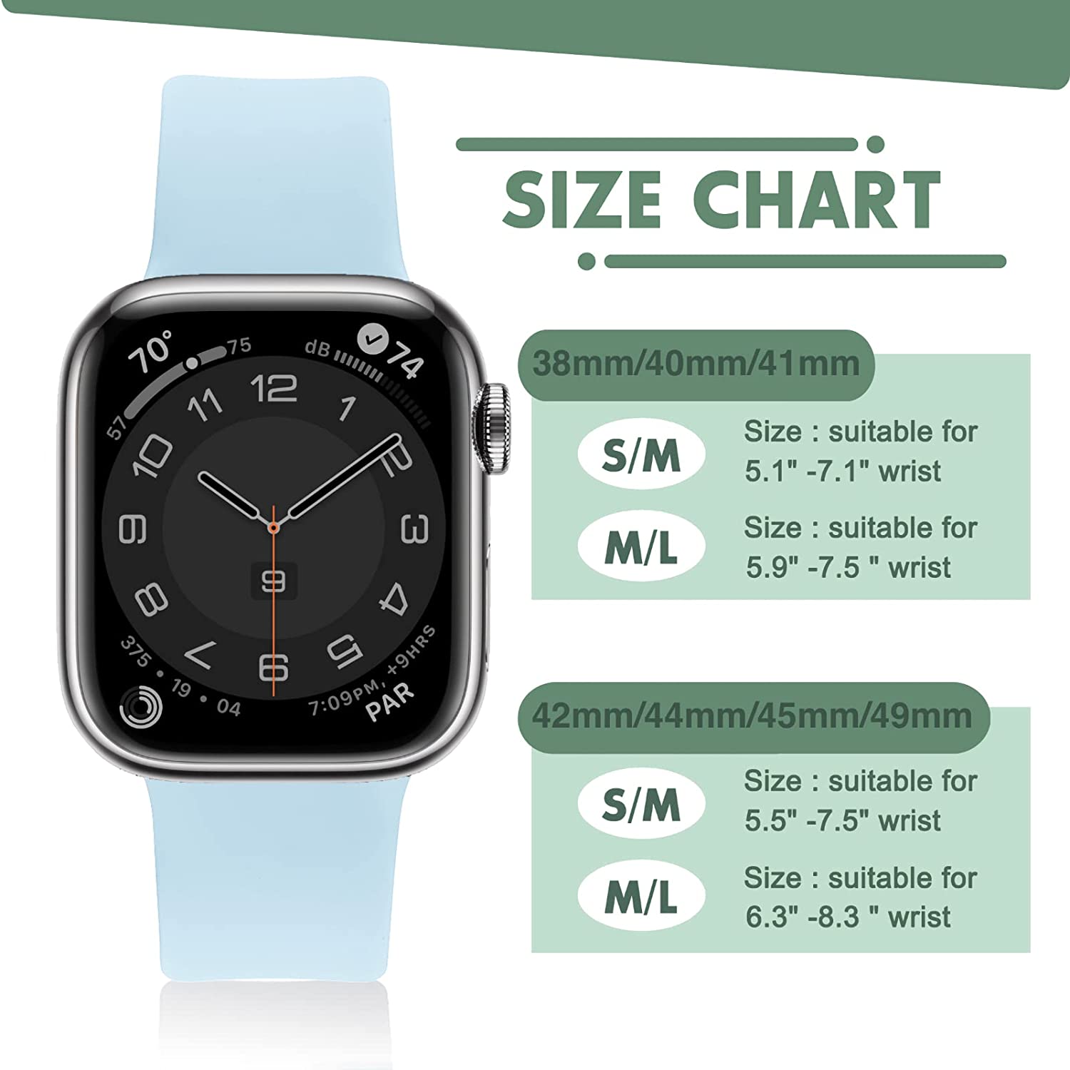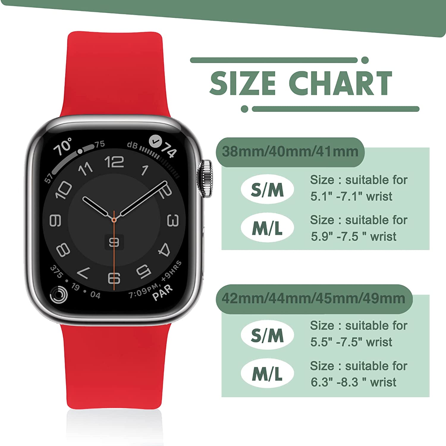 • 【Compatible models】: The Sport Watch Band is compatible with Apple Watch Ultra, Apple Watch SE, and Apple Watch Series 8/7/6/5/4/3/2/1. Available in 38mm, 40mm, 41mm, 42mm, 44mm, 45mm, and 49mm sizes. It comes with well-designed replacement wristbands.
