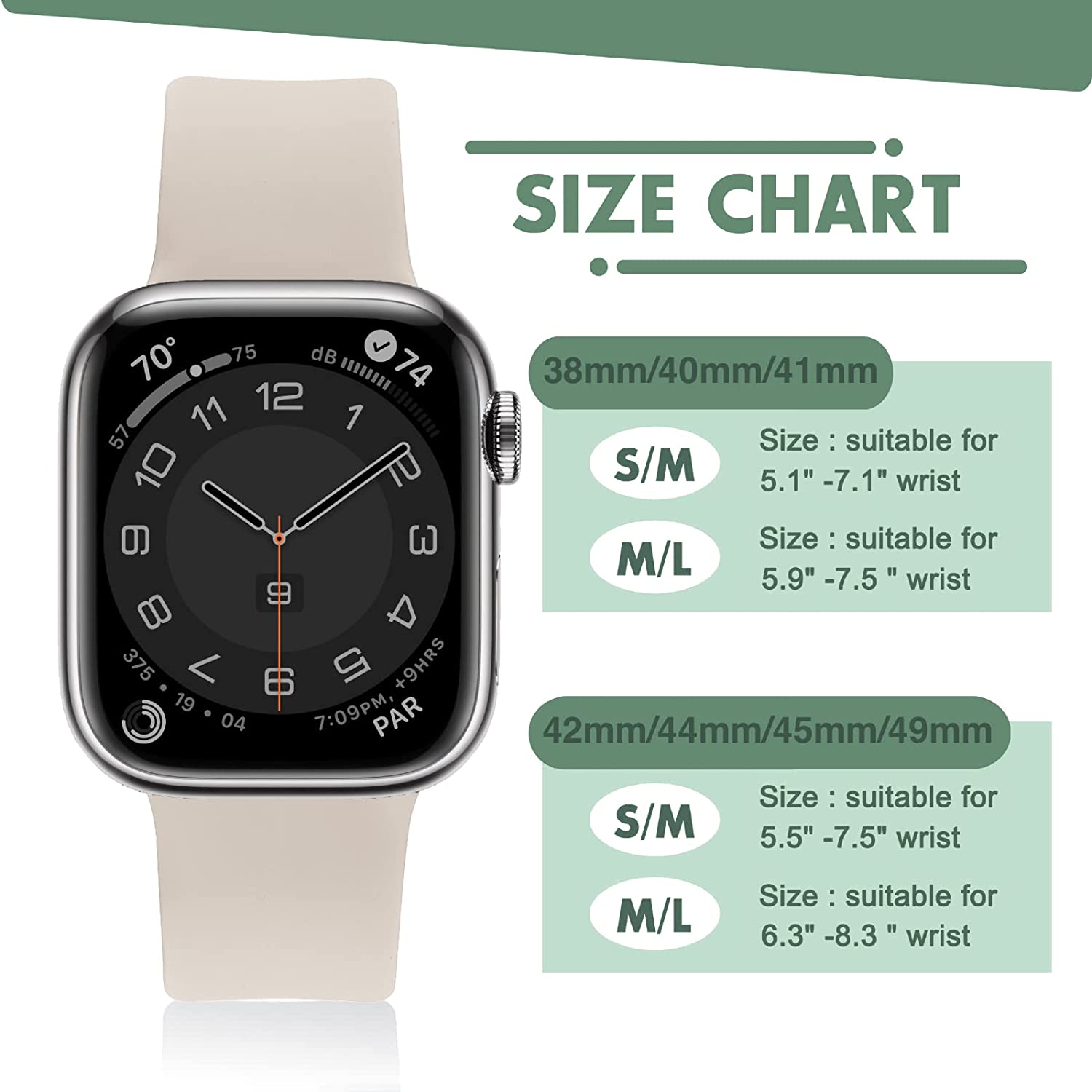 Tighesen Sport Bands Compatible with Apple Watch Band 38mm 40mm 41mm 42mm 44mm 45mm 49mm S/M M/L for Women/Men Waterproof Soft Silicone Replacement Strap Accessories for iWatch Ultra SE Series 8/7/6/5/4/3/2/1(Starlight, 38/40/41mm S/M)