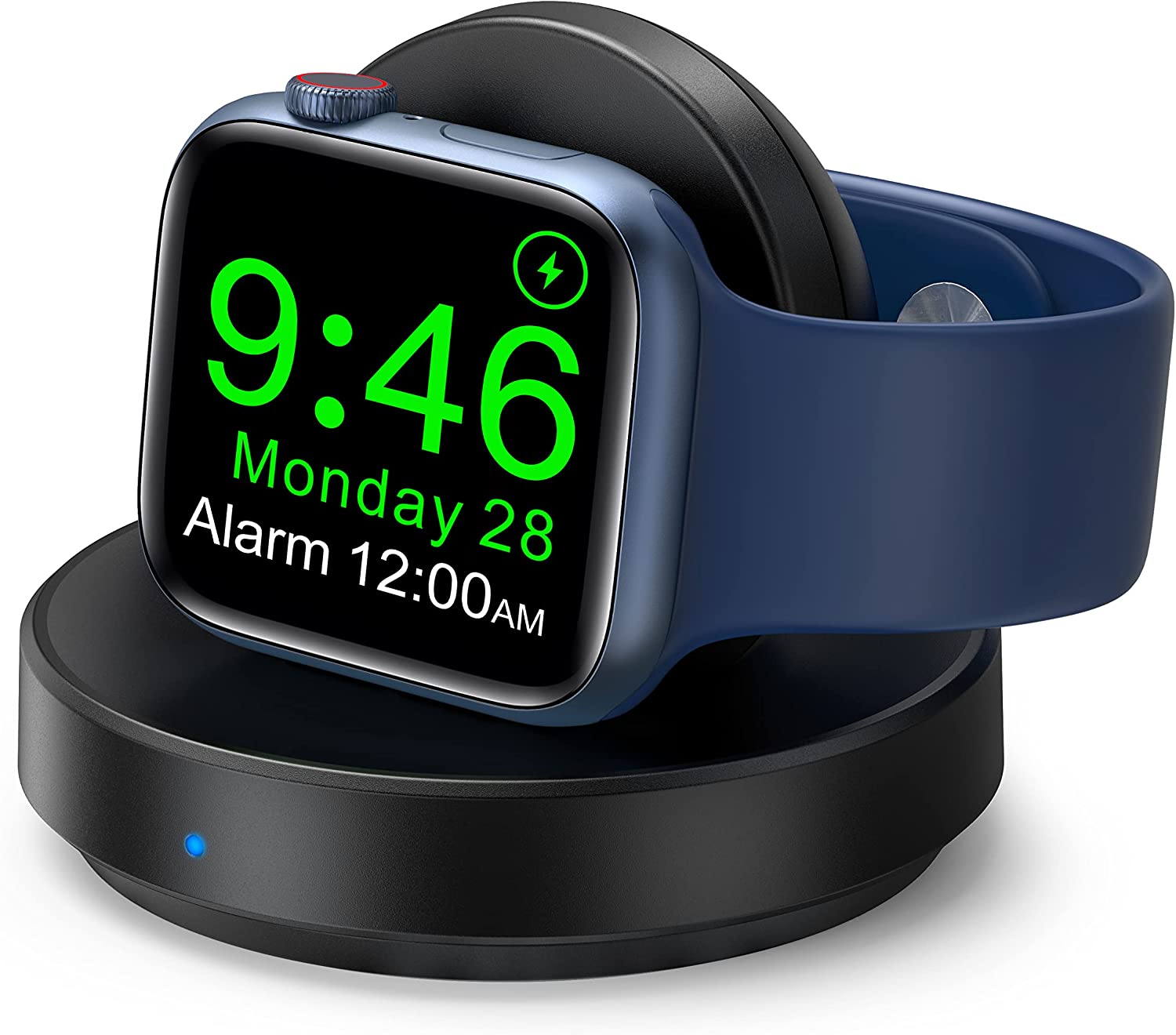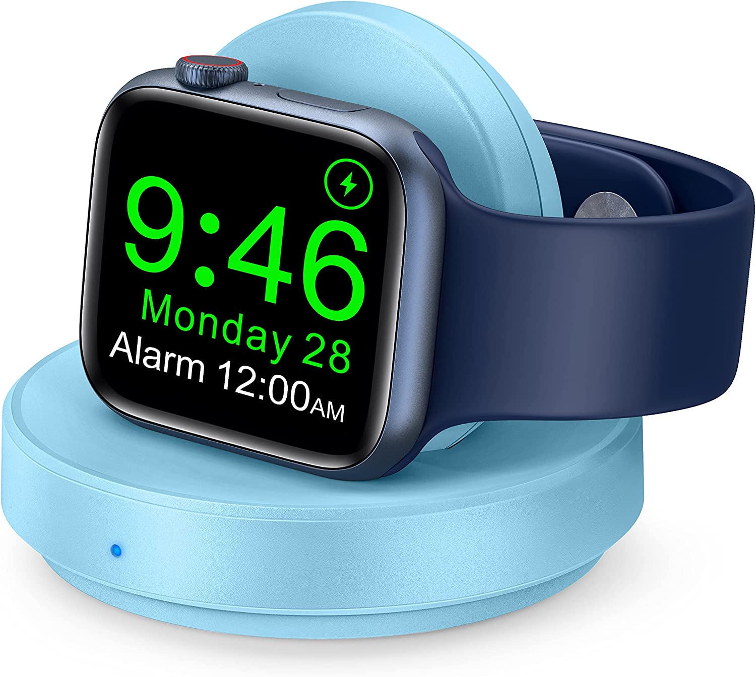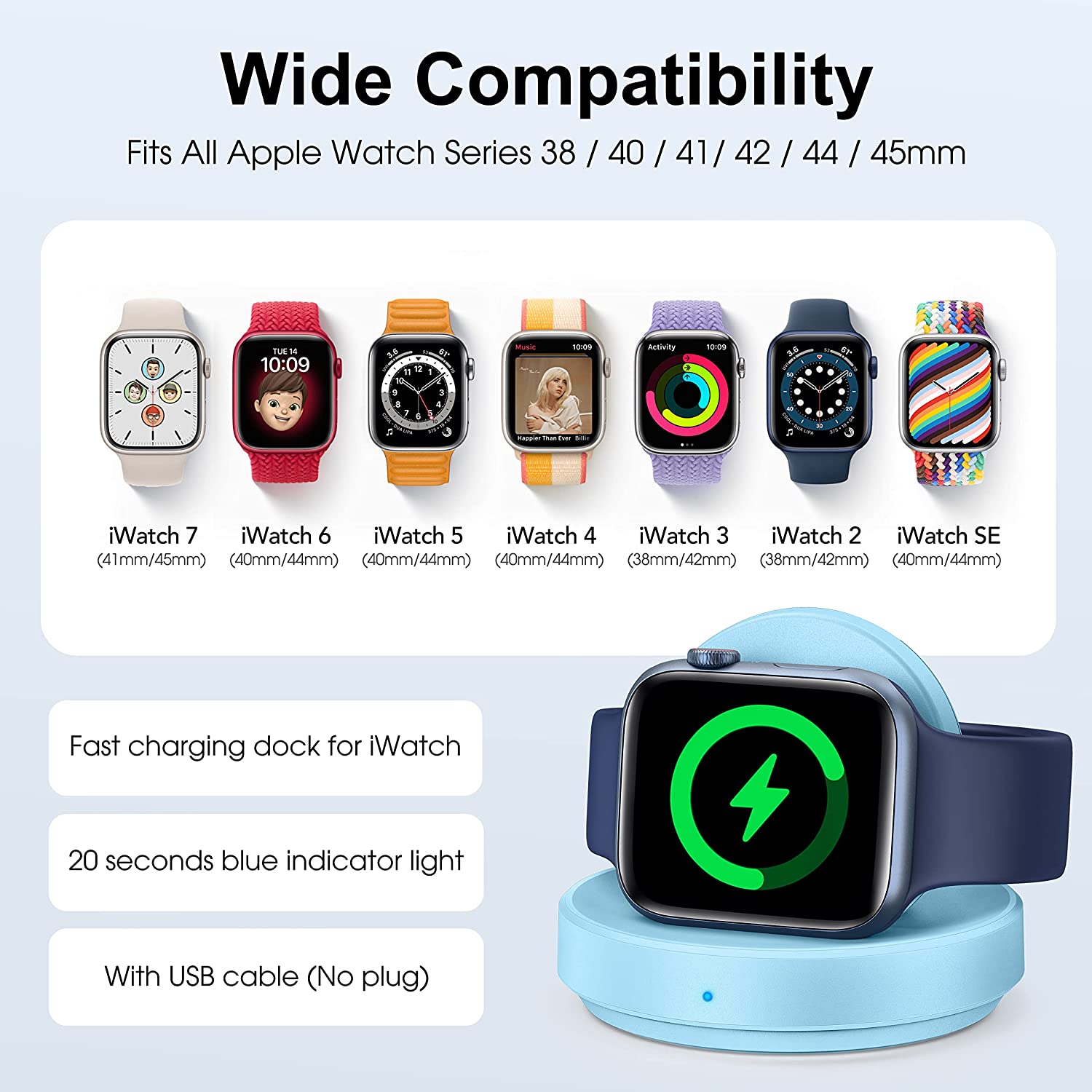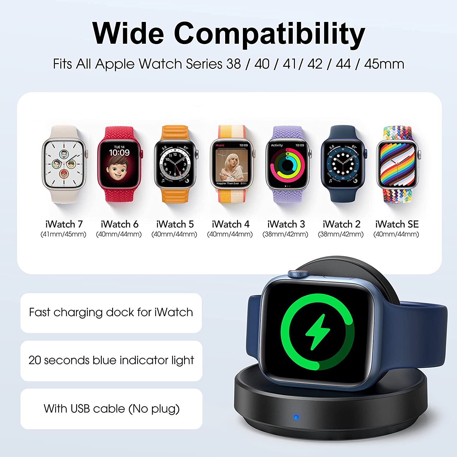 • One-Step Charging Stand: Simply place your Apple Watch upright on the dock to start charging, no installation required, very easy to use. With 20s blue indicator light which means your watch starts to charge, and it will cut off automatically when your watch is fully charged. (Note: The power adapter is not included, you may need a USB A port adapter.)