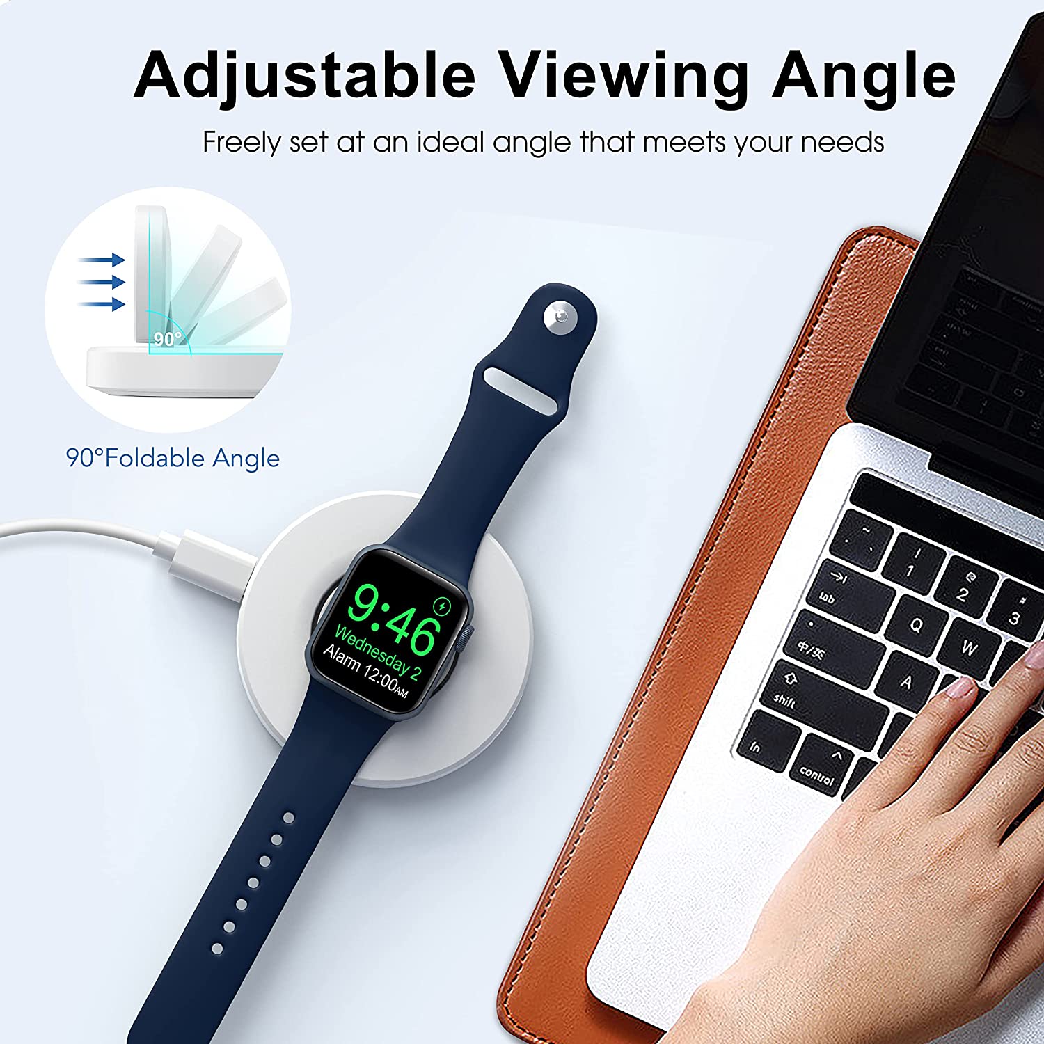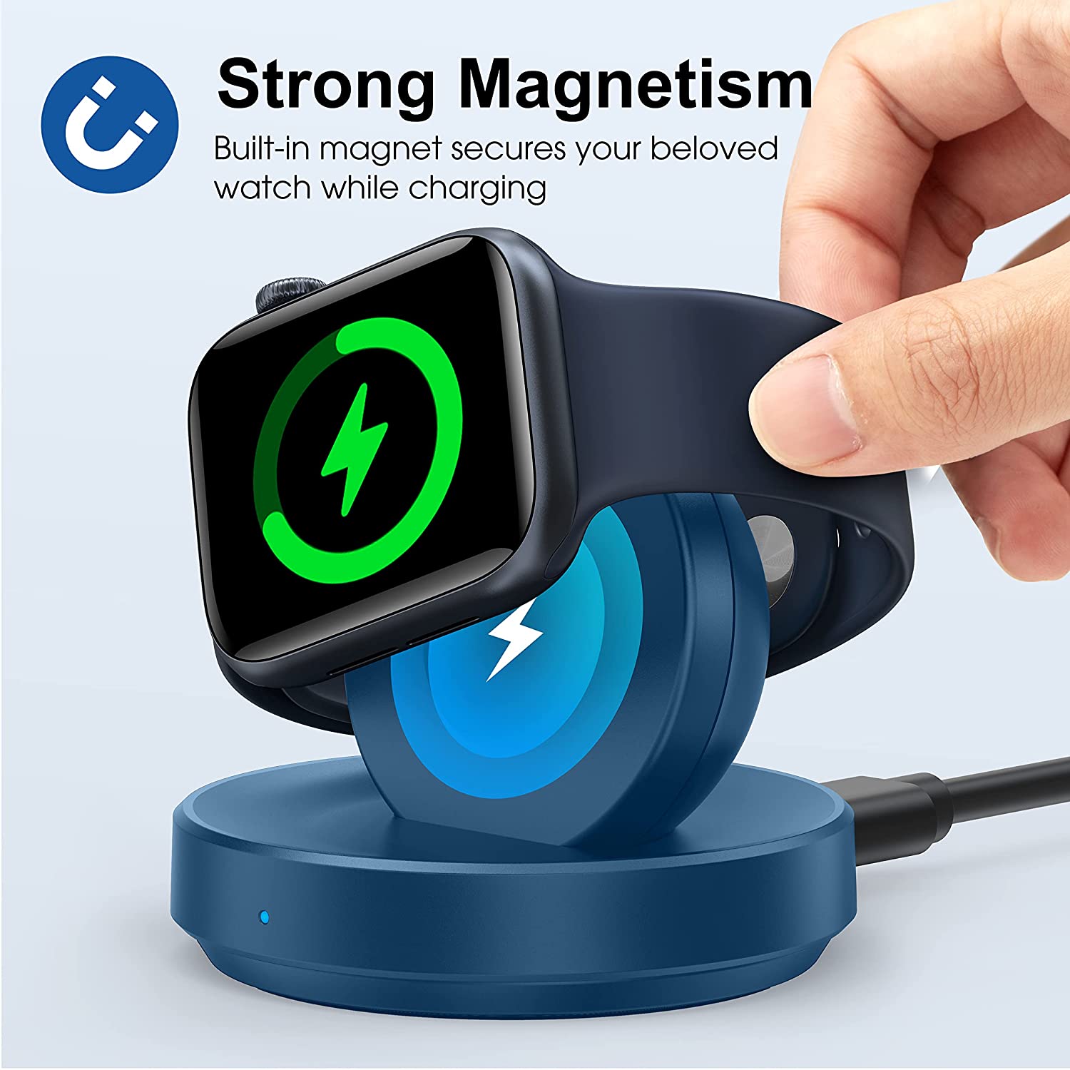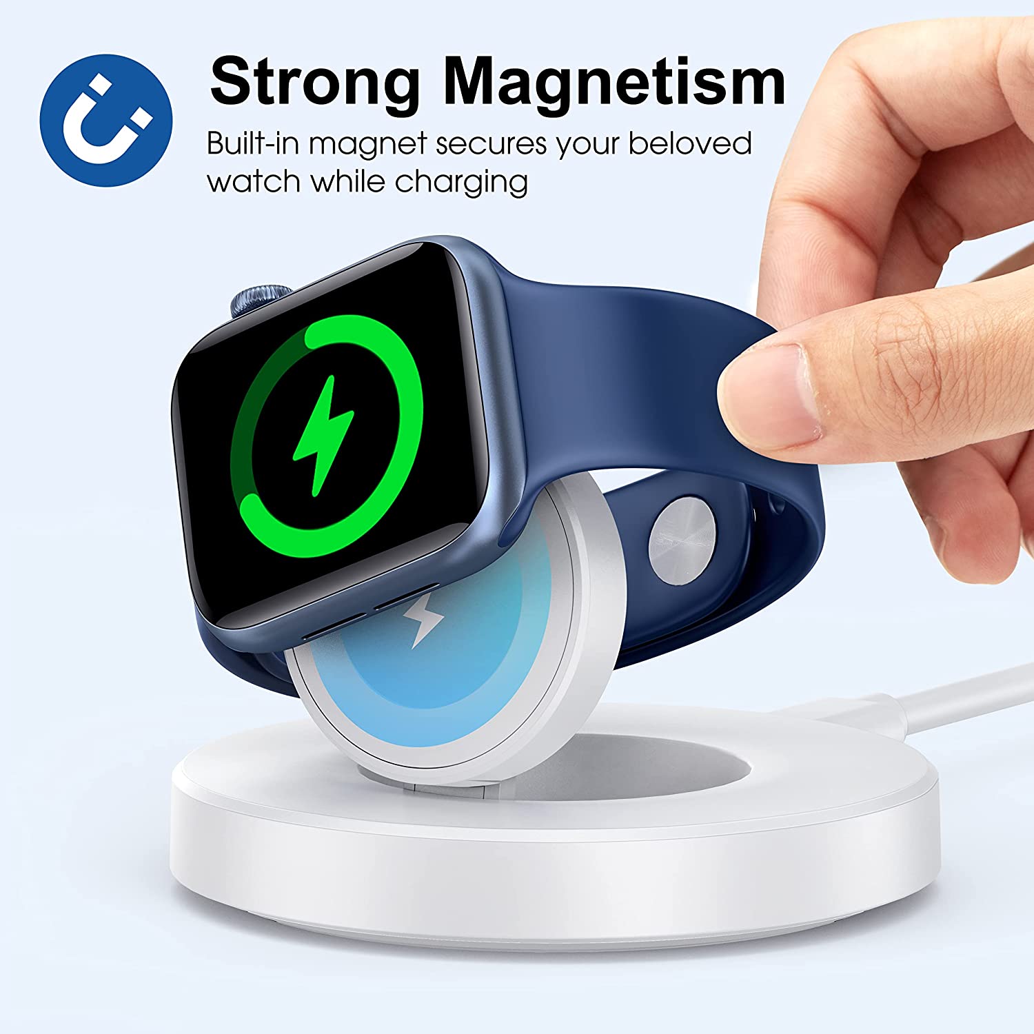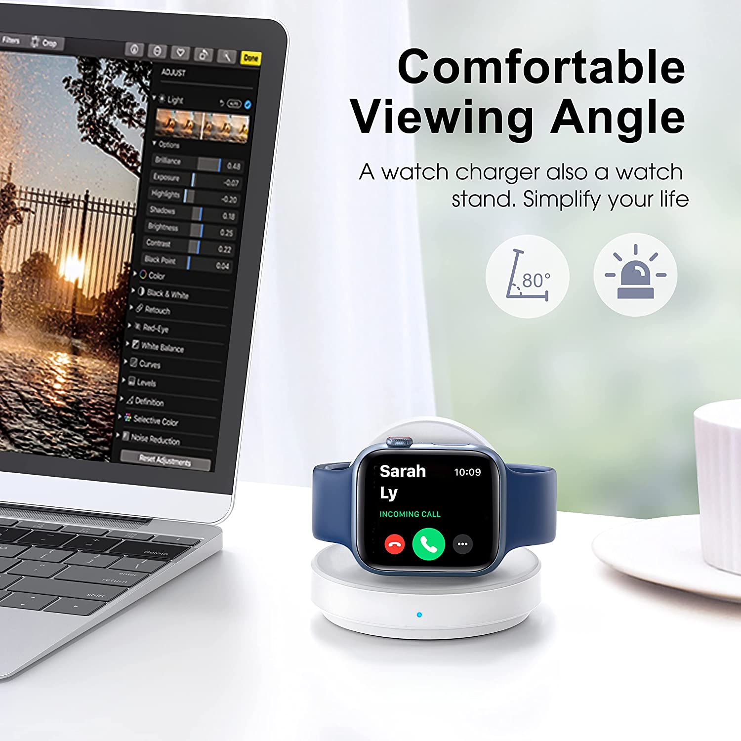 ZAPOGO Portable Magnetic Charging Dock for Apple Watch, Wireless Fast Watch Charger Stand with Charging Cable, Support Nightstand Mode, Compatible with Apple Watch Series 8 7 SE 6 5 4 3 2-White