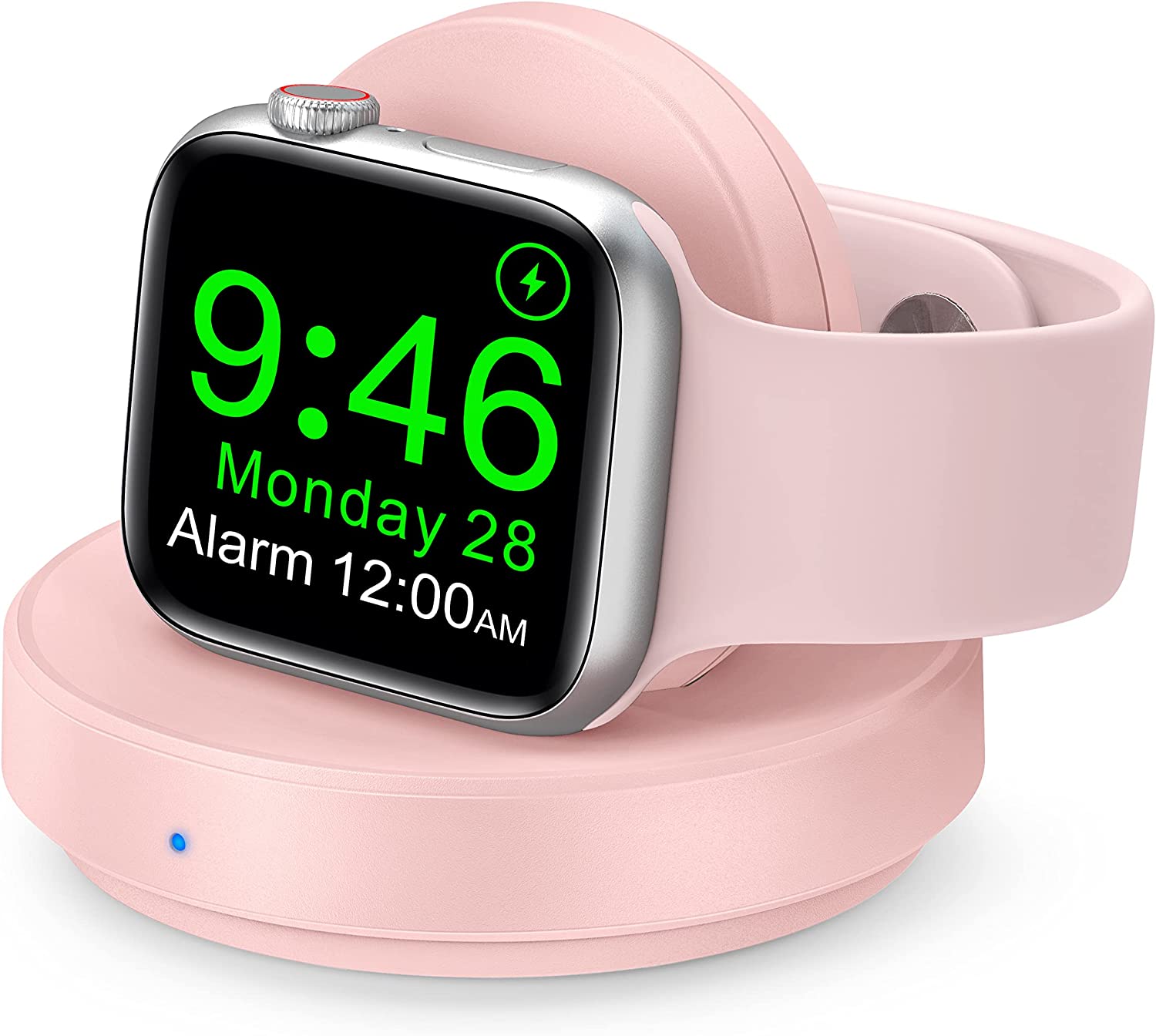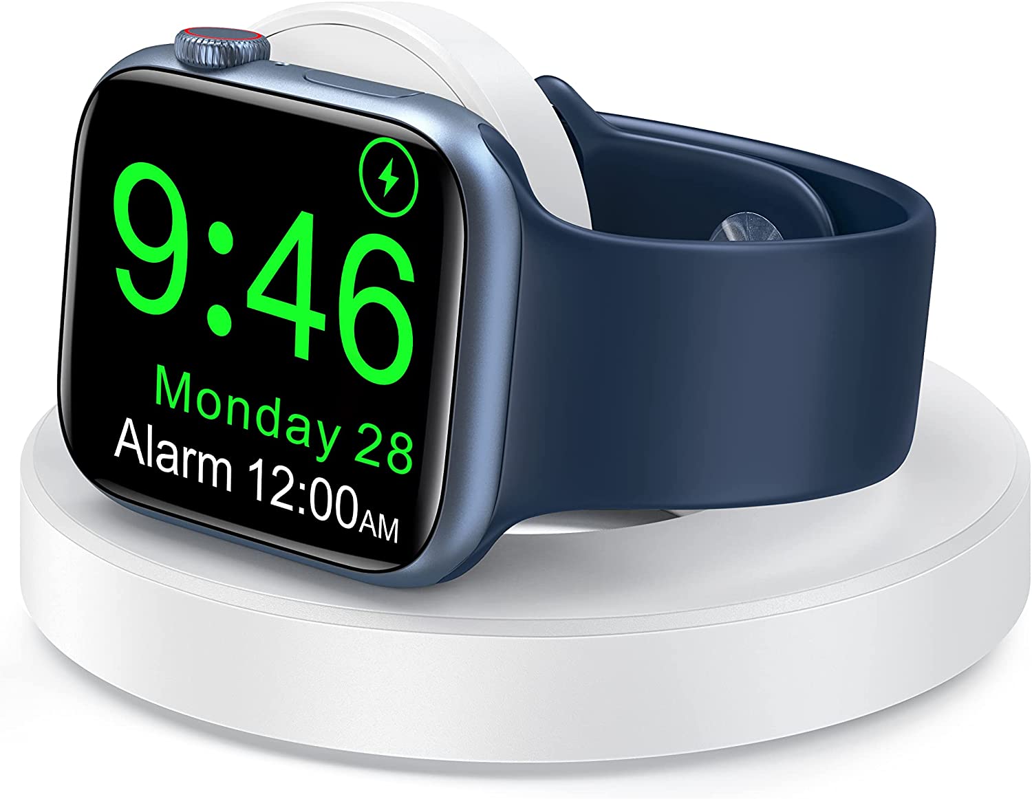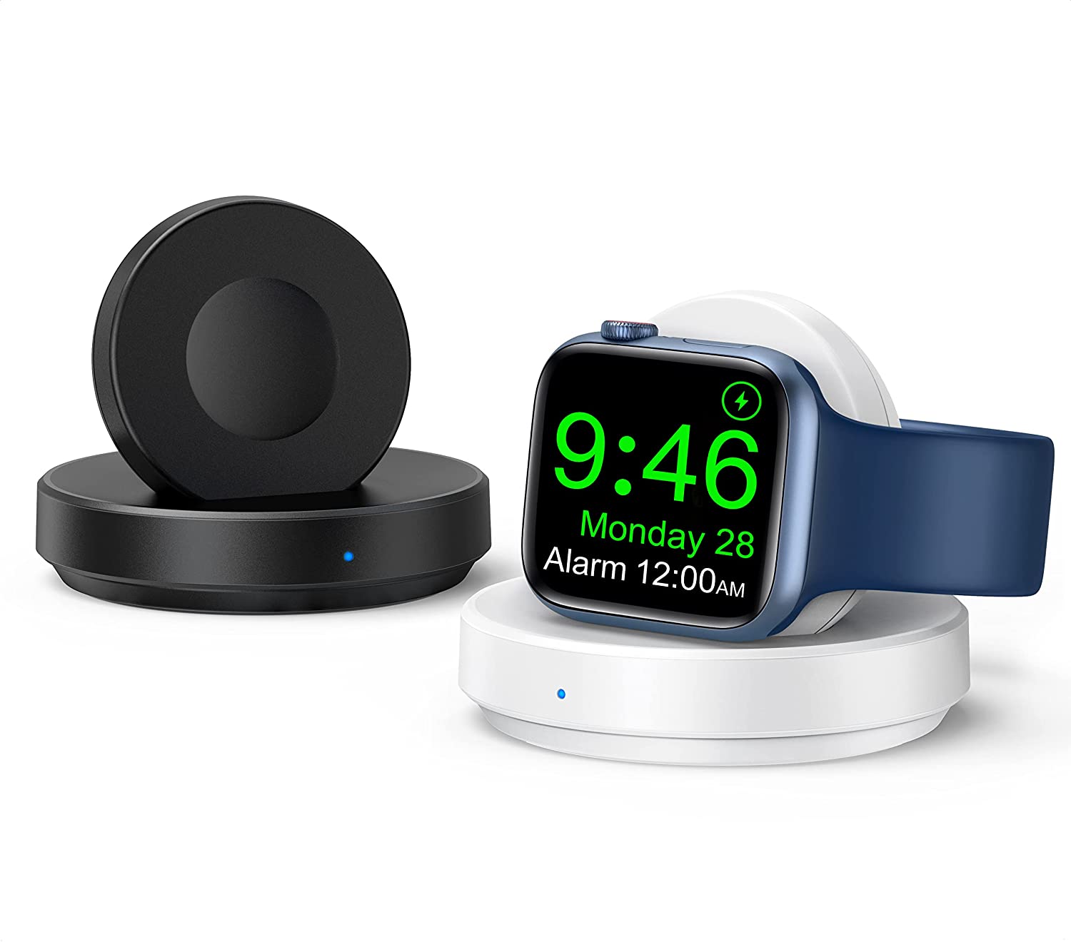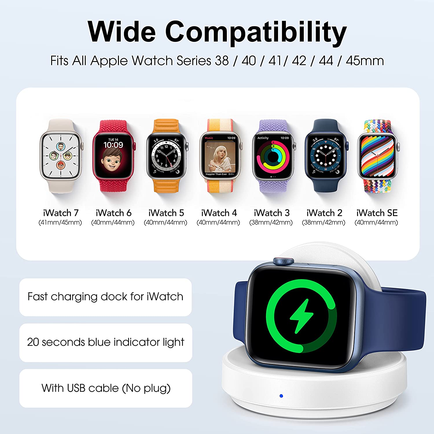 ZAPOGO Portable Magnetic Charging Dock for Apple Watch, Wireless Fast Watch Charger Stand with Charging Cable, Support Nightstand Mode, Compatible with Apple Watch Series 8 7 SE 6 5 4 3 2-White