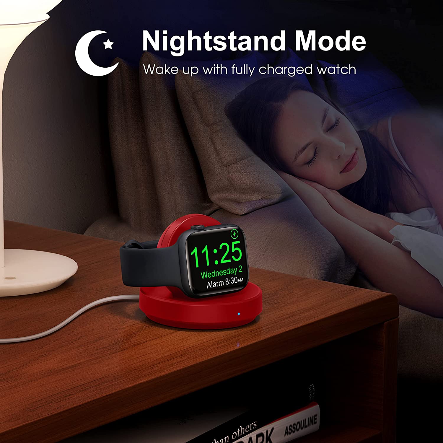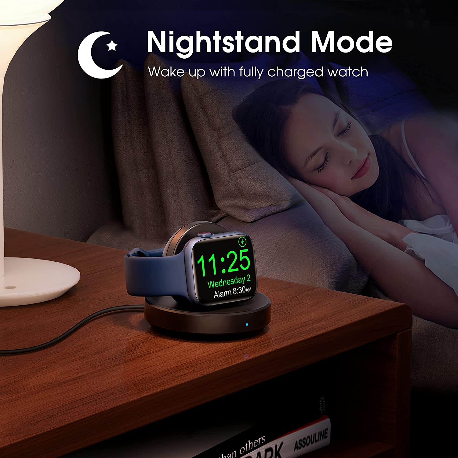 • Charging with Nightstand Modes: The watch charging stand supports Apple Watch in nightstand mode, bedside time-telling piece, also could be an alarm clock. (Tips: before using the nightstand mode function, please turn on the nightstand mode in your watch settings in advance.)