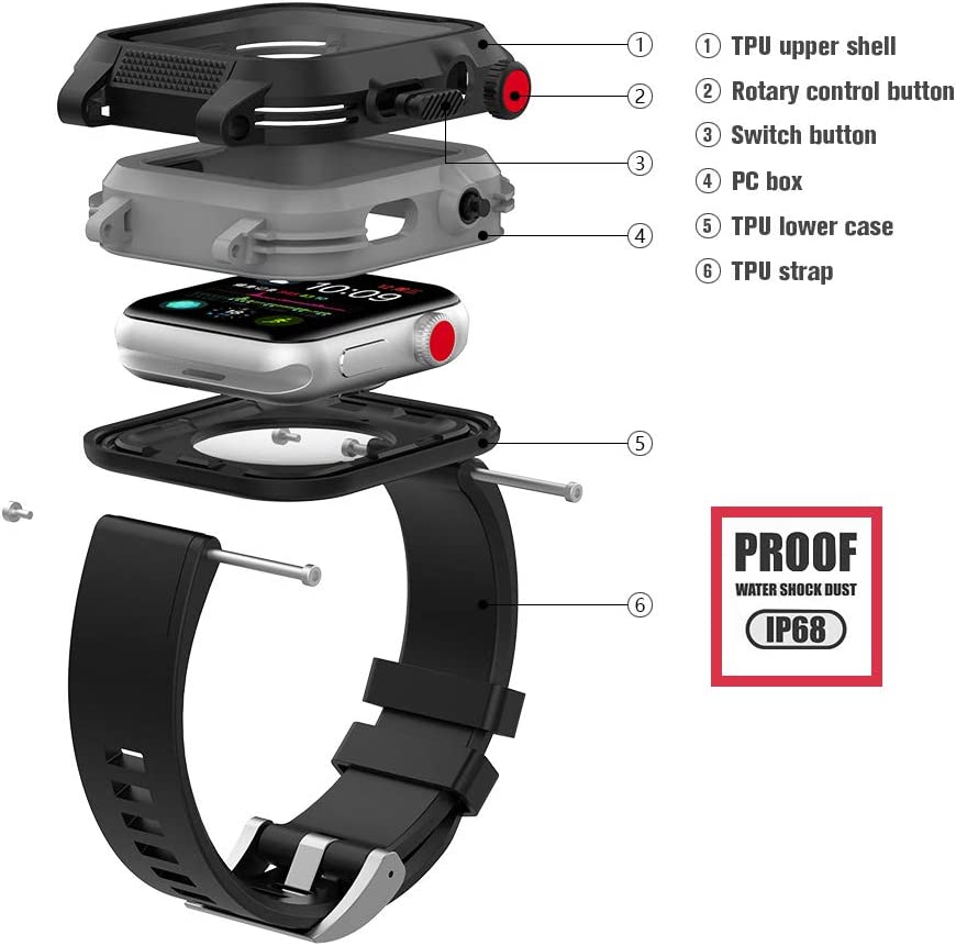 • [COMPATIBLE MODEL]:Specifically designed waterproof case with band compatible for Apple Watch Series 3 & 2 42mm, Not compatible with other models.PC bumper combined with TPU material,soft silicone strap band make it comfortable to wear
