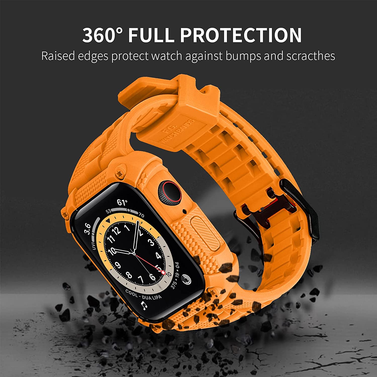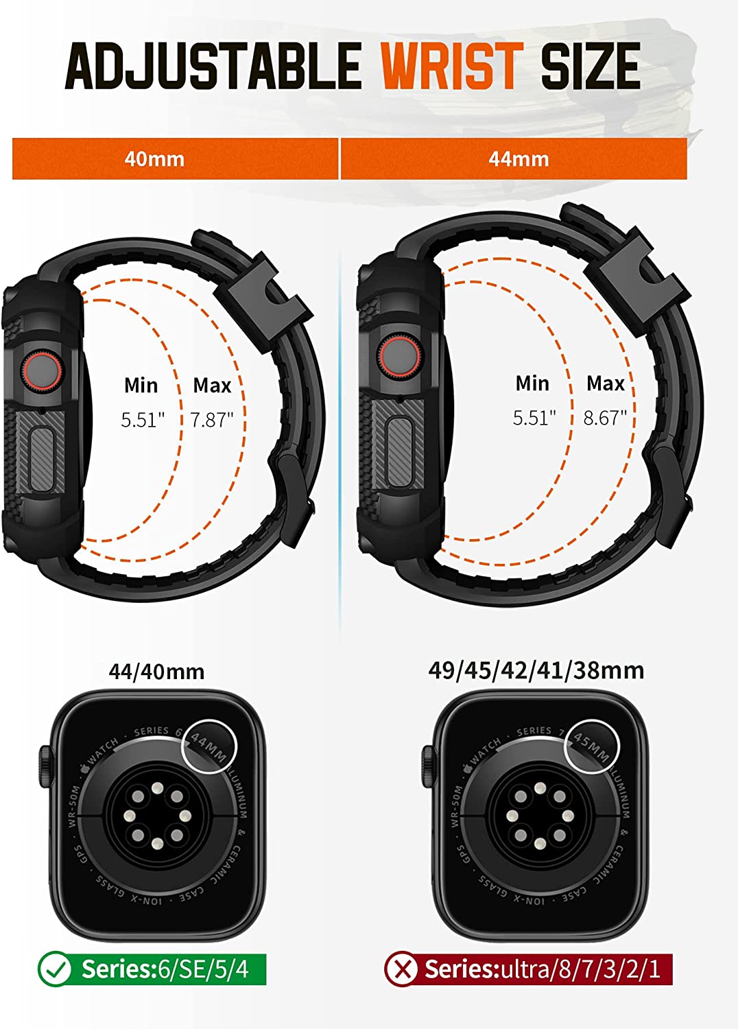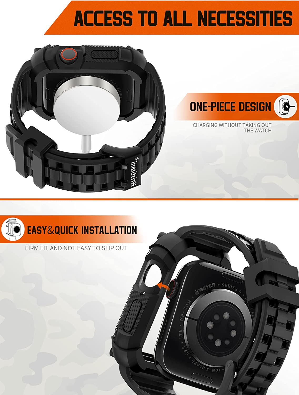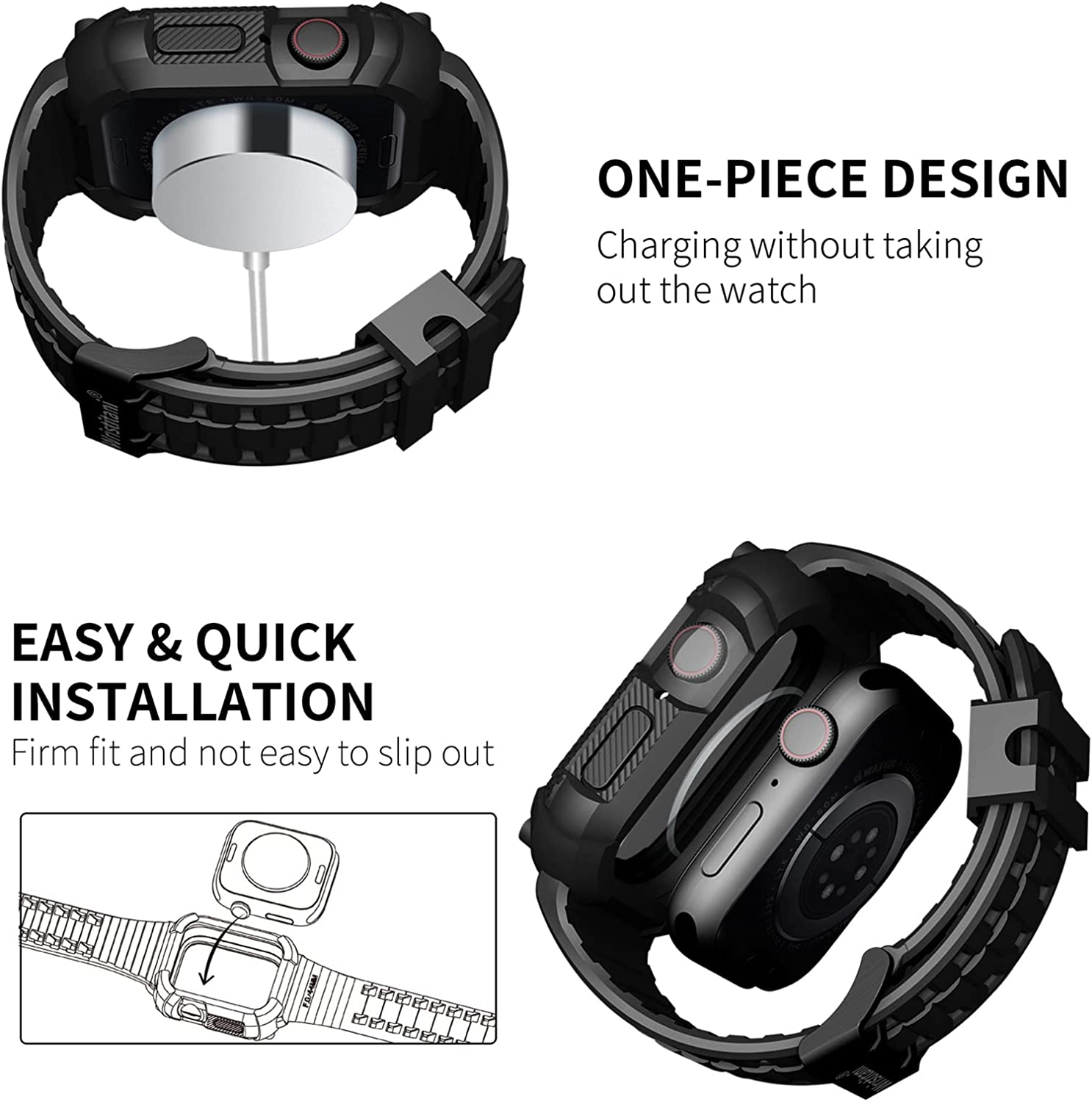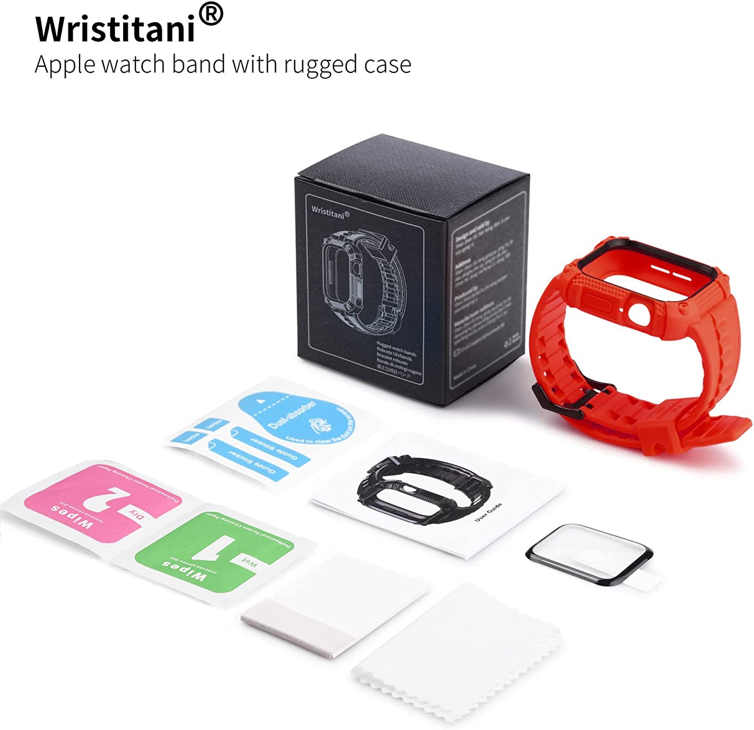 • ✅ WHAT’S INCLUDED: 1*Exquisite box, 1* rugged apple watch band with bumper case, 1* Screen Protector with installation kit(Screen Protector, Dry Wipes, Wet Wipes, Dust Removal Stickers, Bubble Squeegee), 1* User Manual.