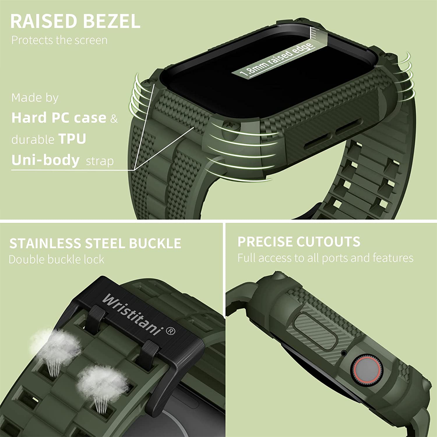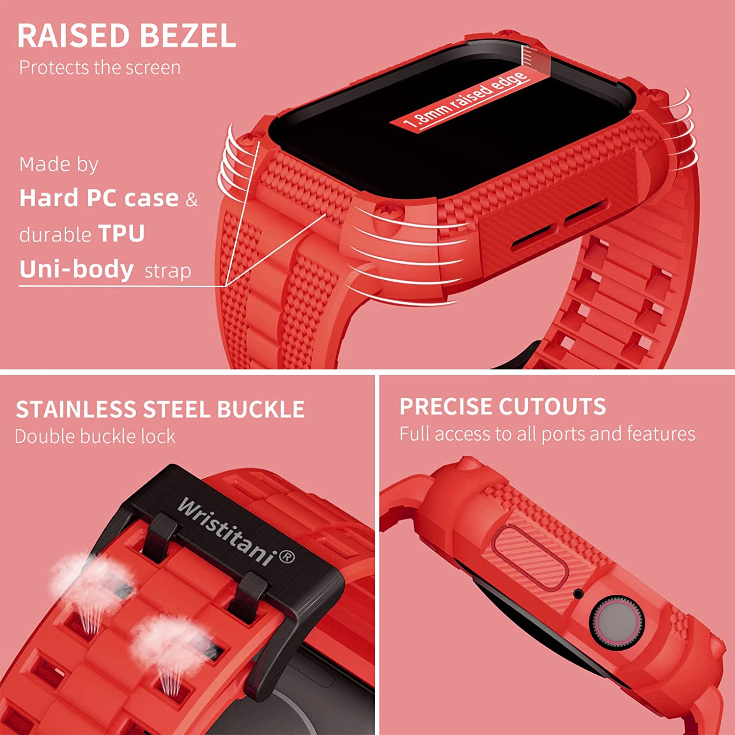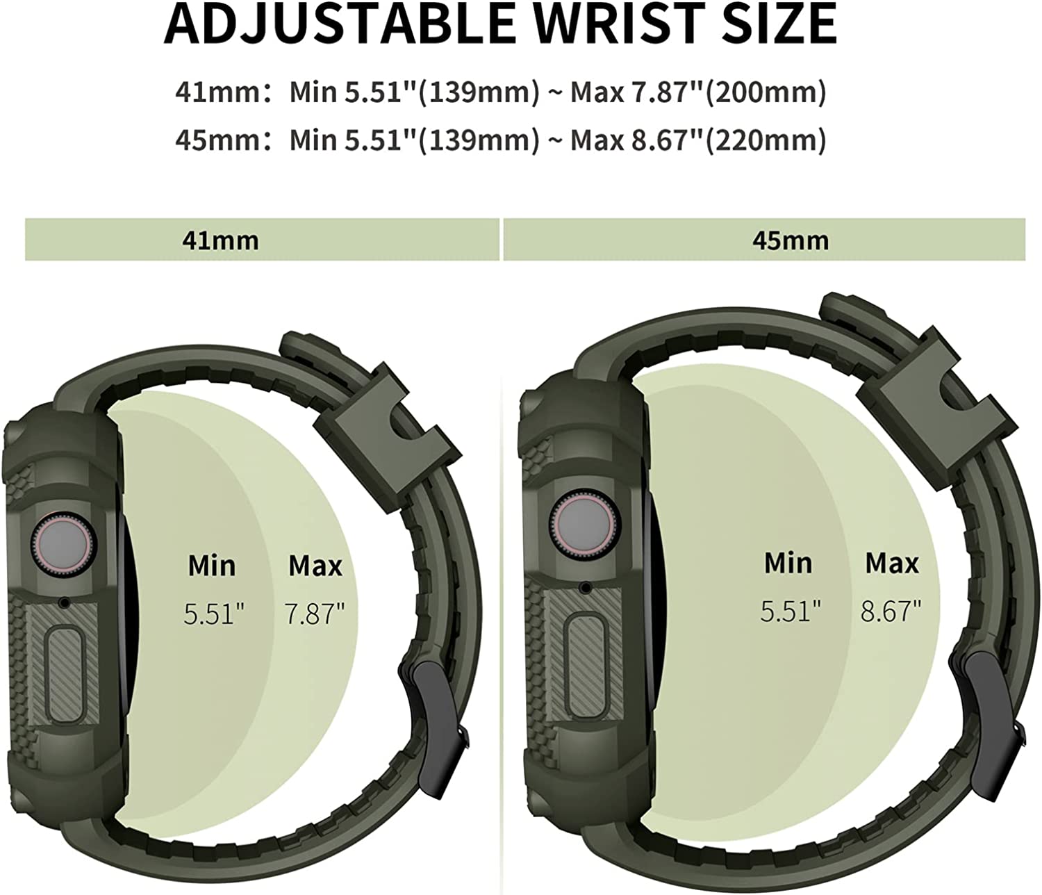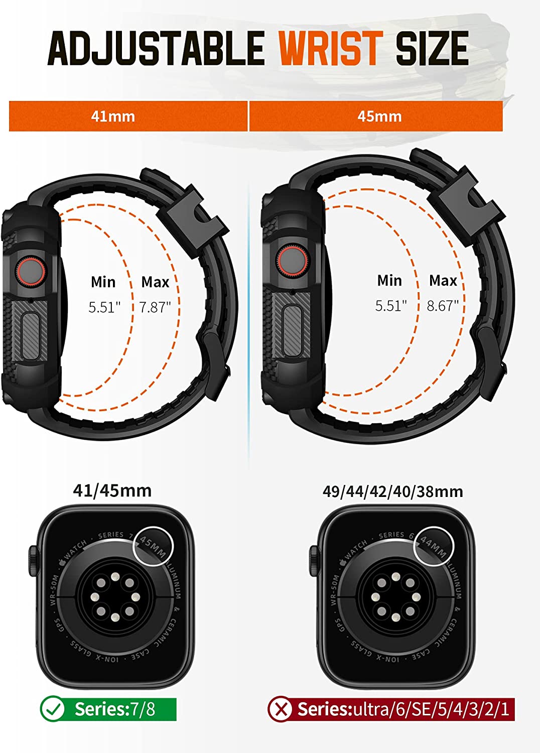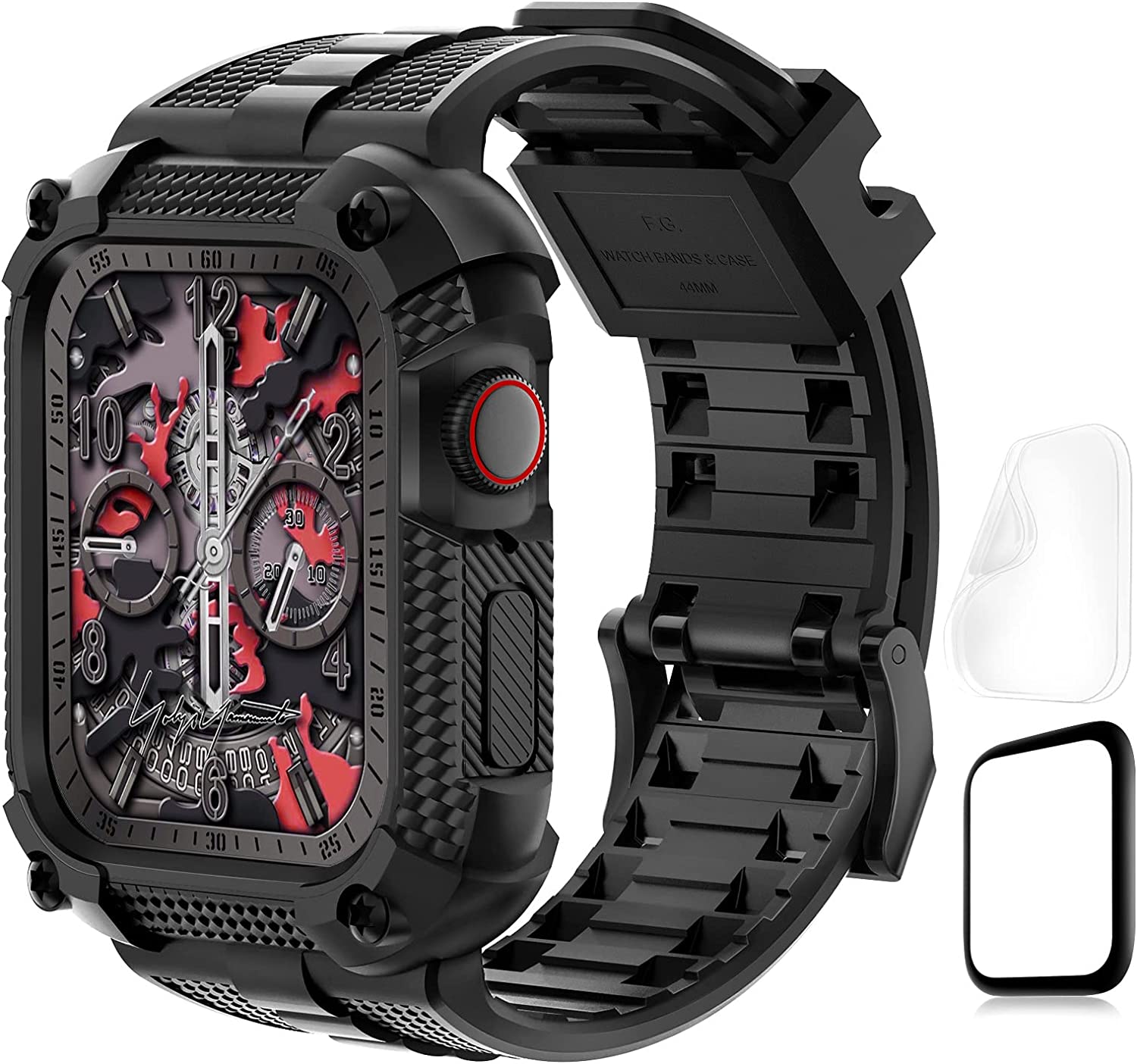 • ✅ WHAT’S INCLUDED: 1*Exquisite box, 1* rugged apple watch band with bumper case, 1* Screen Protector with installation kit(Screen Protector, Dry Wipes, Wet Wipes, Dust Removal Stickers, Bubble Squeegee), 1* User Manual.