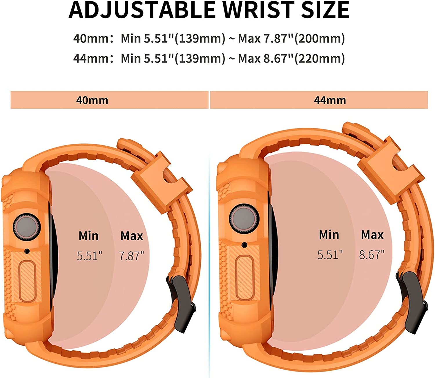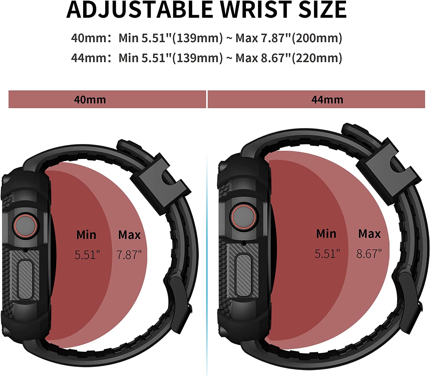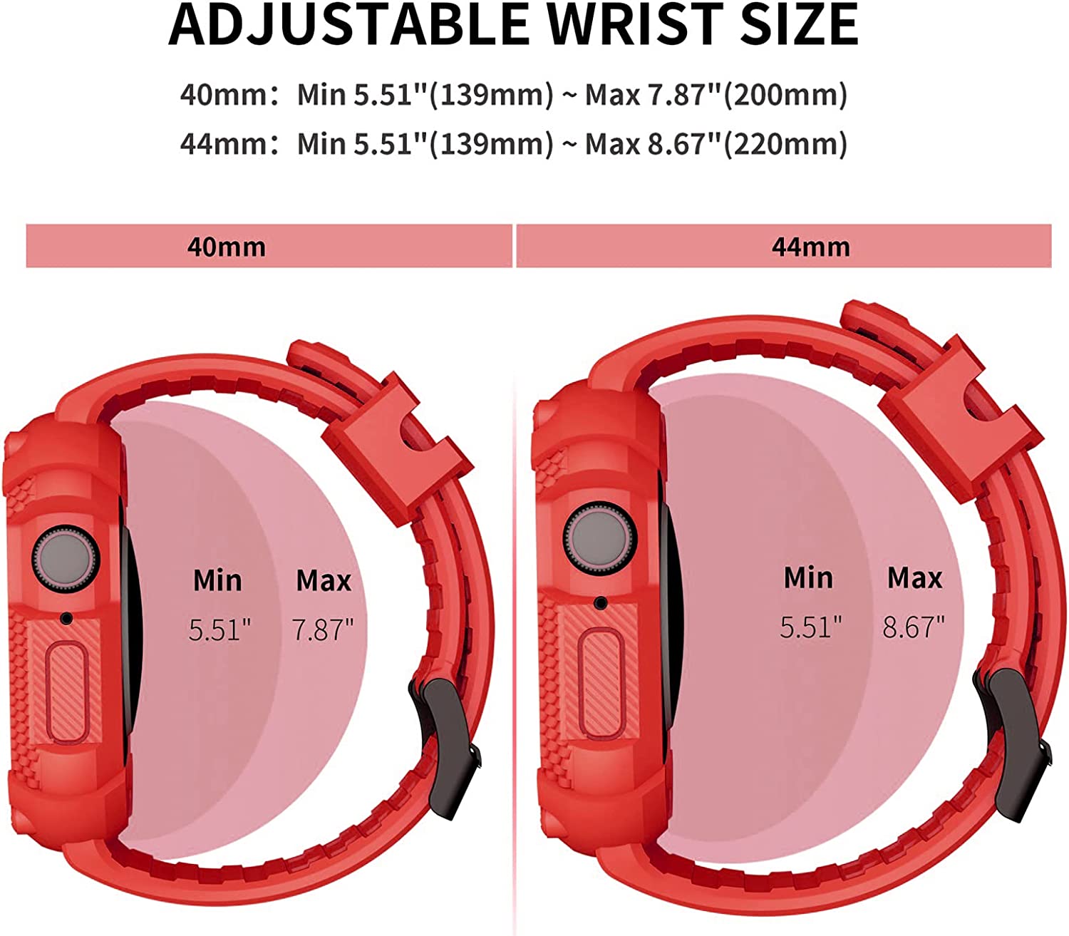 • ✅ ADJUSTABLE APPLE WATCH SPORT BAND: Specifically engineered to fit Apple Watch Band with Case Series 8/SE2/7/6/SE/5/4. 40/41mm iwatch band fits 5.51inch to 7.87 inch wrists. Double air holes make it more breathable and adjustable, keeping your wrist cool.