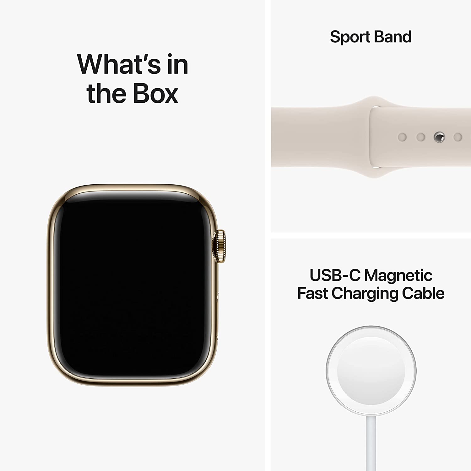 Apple Watch Series 8 [GPS + Cellular 45mm] Smart Watch w/Starlight Aluminum Case with Starlight Sport Band - M/L. Fitness Tracker, Blood Oxygen & ECG Apps, Always-On Retina Display, Water Resistant