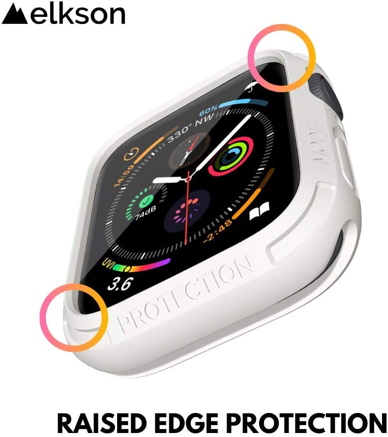 elkson Compatible with Apple Watch 44mm Bumper Case, Quattro Series Rugged Case for Apple Watch SE 2 and iWatch Series 6 5 4, Military Grade Durable Protective Cover, Flexible Shock Proof, White