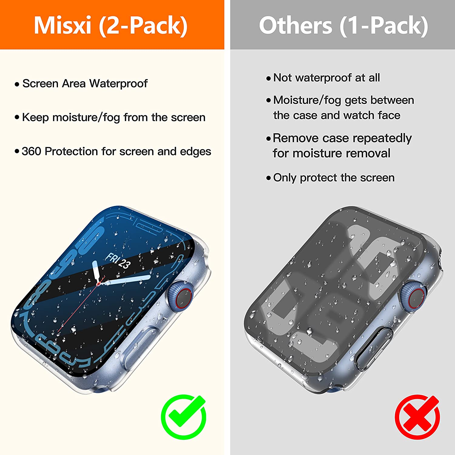 • [IP67] Waterproof Certified: [IP67] certified to ensure excellent water resistance. The built-in waterproof sealing ring prevents water from penetrating between the case and the watch(the waterproof area is the screen, not the side of the watch). It prevents moisture from entering the interior of the case when washing hands or during daily activities. Don't immerse the watch in water for a long time, as this will reduce the water resistance of the case.
